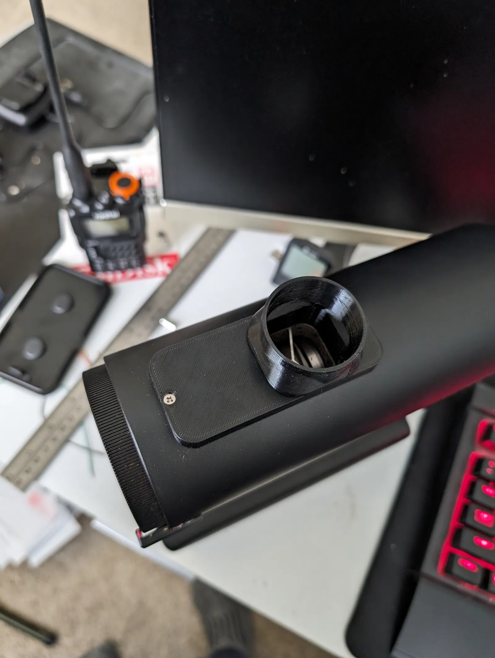- Một số dung sai đã được tích hợp vào khu vực Bộ chuyển đổi phễu bên trong lắp vào tấm adapter, vì vậy để đạt được độ khít chặt, điều cần thiết cho hoạt động đúng của máy xay, hãy quấn vài vòng băng Kapton hoặc băng mỏng tương tự để đạt được độ bám tốt.