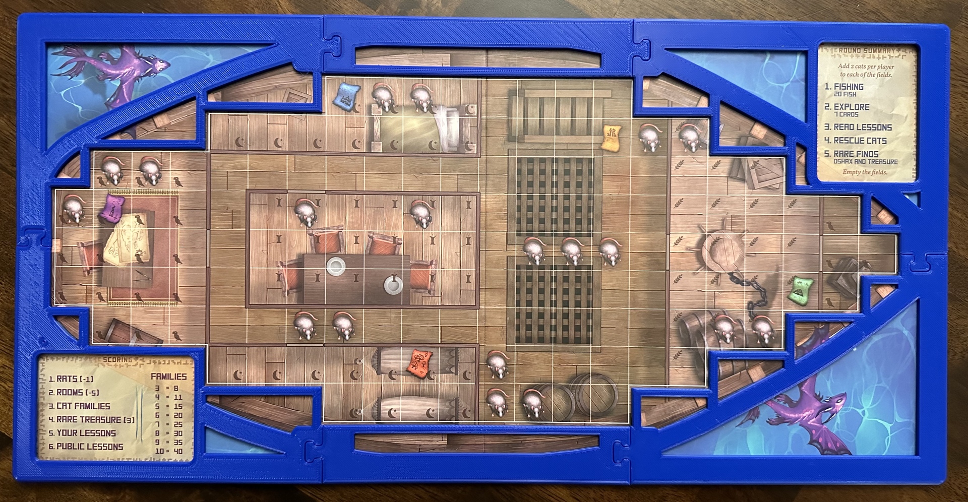 Khung thuyền và khay đựng kho báu cho board game The Isle of Cats.