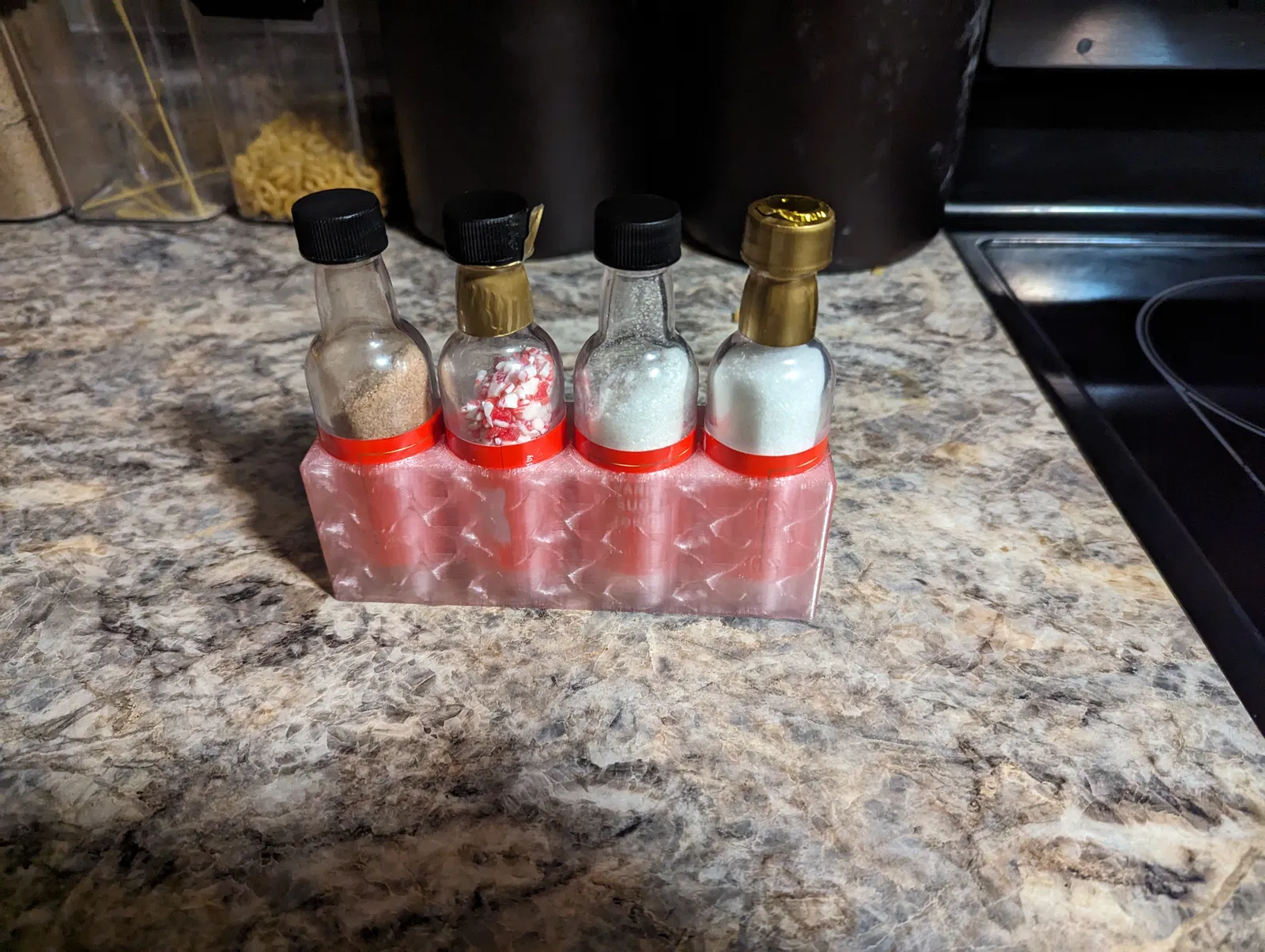 Khay đựng chai lọ hình tròn này có 4 ngăn, mỗi ngăn đường kính 36 mm, có thể tùy chỉnh kích thước. Rất phù hợp để sắp xếp đồ đạc, từ chai lọ đến gia vị, có thể để dọc, ngang hoặc nằm đều được. Giải pháp lưu trữ linh hoạt cho mọi nhu cầu.