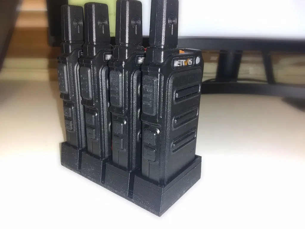 Cái đế này có thể để 4 cái bộ đàm RT19 dựng đứng và chắc chắn. Phần đế của đế khớp với đáy của bộ đàm 2 chiều để giữ nó cố định. Xin lưu ý rằng vì hình dạng độc đáo ở phần đế, cái dock này sẽ không hoạt động với các mẫu bộ đàm khác.