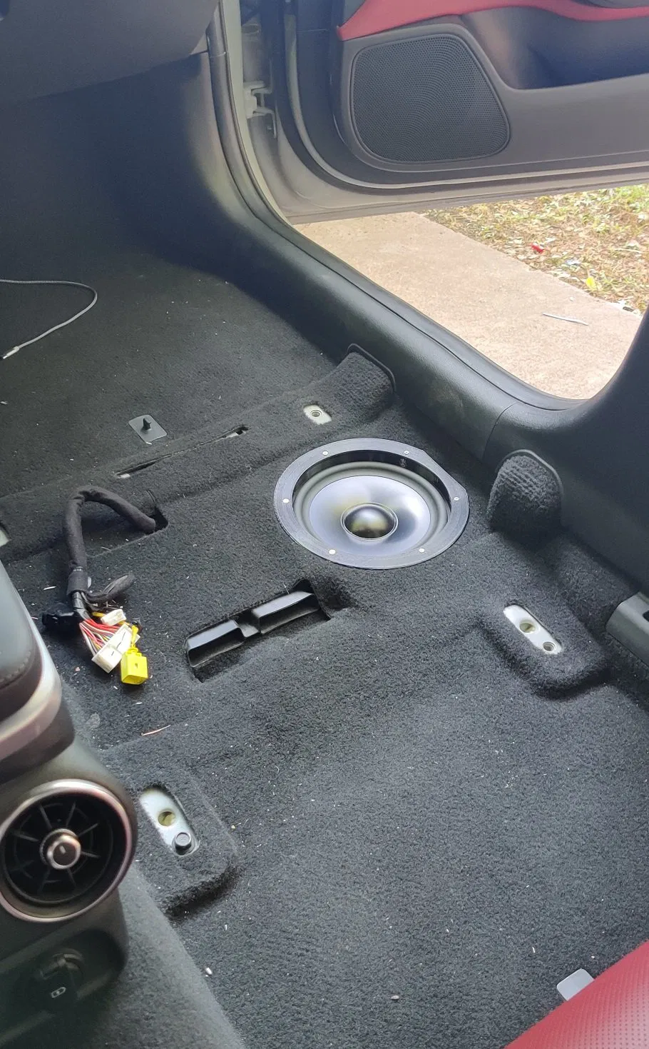 Chốt gắn loa midbass SI TM8 cho xe KIA Stinger. Đây là kiểu infinite baffle, cần khoét lỗ trên xe. Nhớ mirror adapter cho bên tài xế nha!