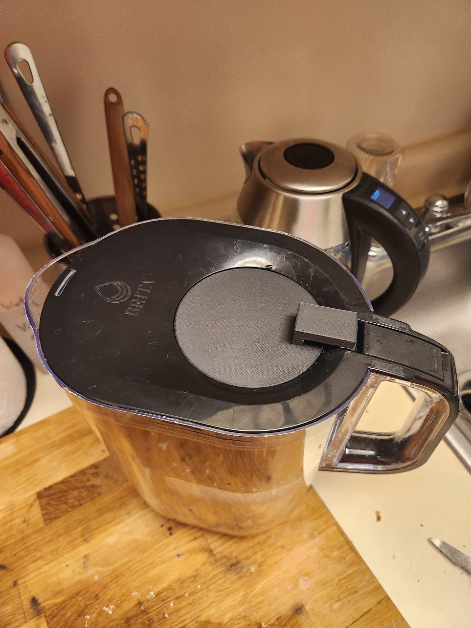Không có nắp thì cũng hơi khó chịu, nhưng cái chính là nó làm cái cảm biến theo dõi việc sử dụng bộ lọc ngừng hoạt động đúng cách - có vẻ nó dựa trên cảm biến ánh sáng, phát hiện số lần bạn mở nắp để đổ đầy khoang chứa nước.