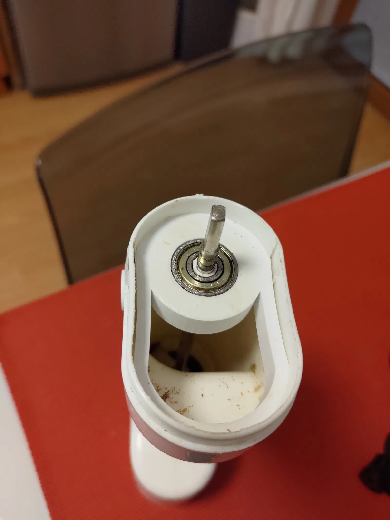 Tôi cũng gặp vấn đề với trục chính - nó bắt đầu tự mài mòn ở vị trí của giá đỡ kim loại phía trên.