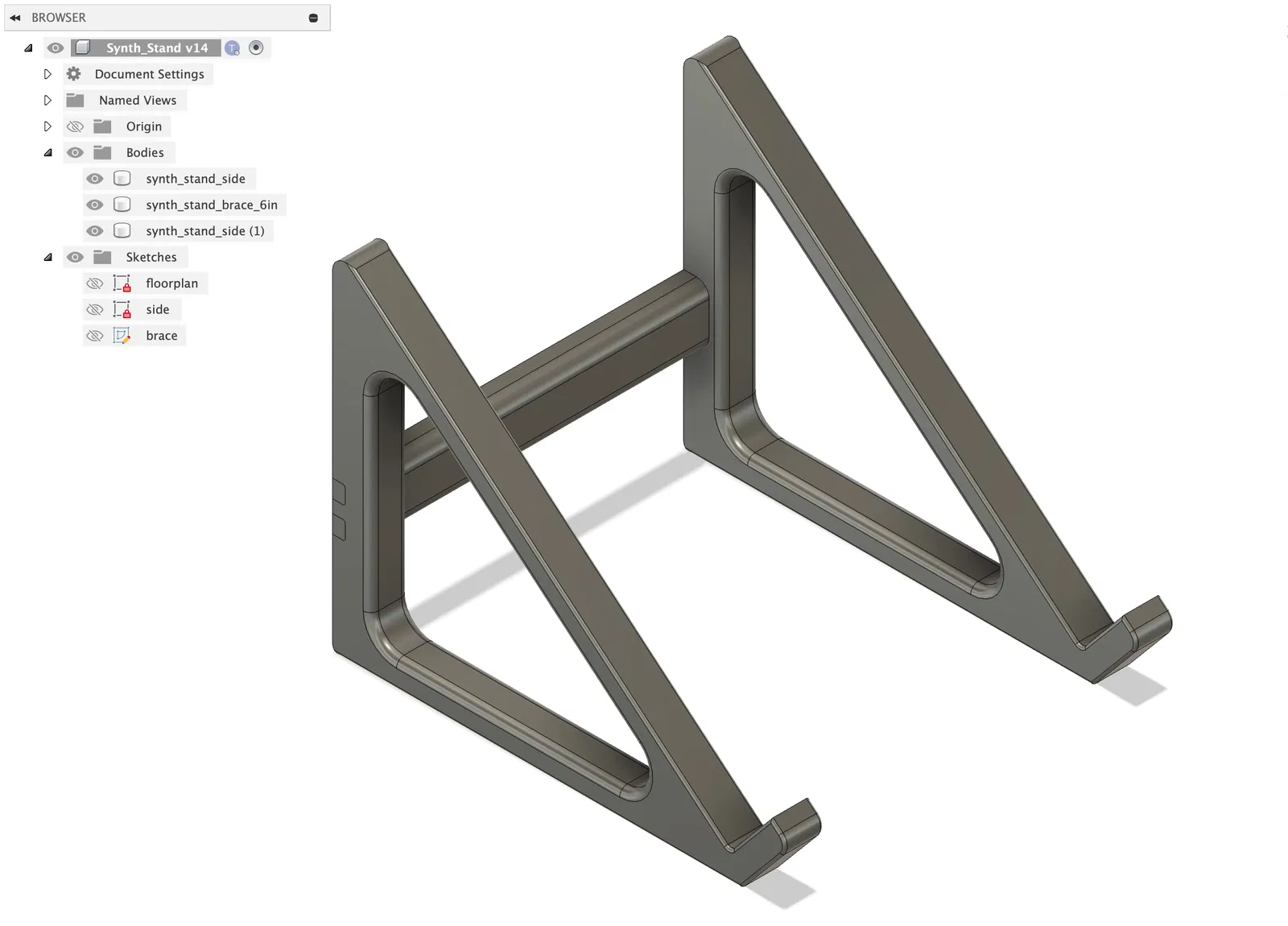 Để in, hãy in hai bản sao của "synth_stand_side.stl" và một bản sao của "synth_stand_brace.stl". Bạn có thể đặt cả ba trên khay in của Prusa. Tôi đã sử dụng PLA với độ cao lớp 0.3mm ở mức 15% infill.