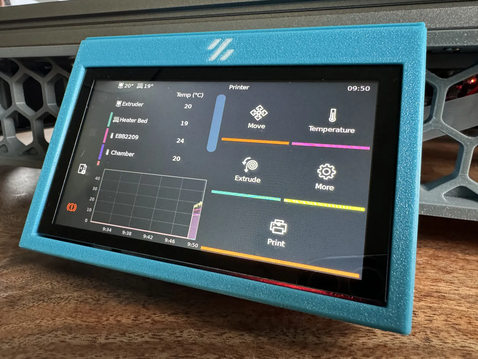 Ngoài ra, tôi đã làm một phiên bản có logo Voron. Có thể hơi khó khăn khi lắp màn hình vào các nút điều chỉnh độ sáng. Tốt nhất nên in với bất kỳ thiết lập MMU nào.