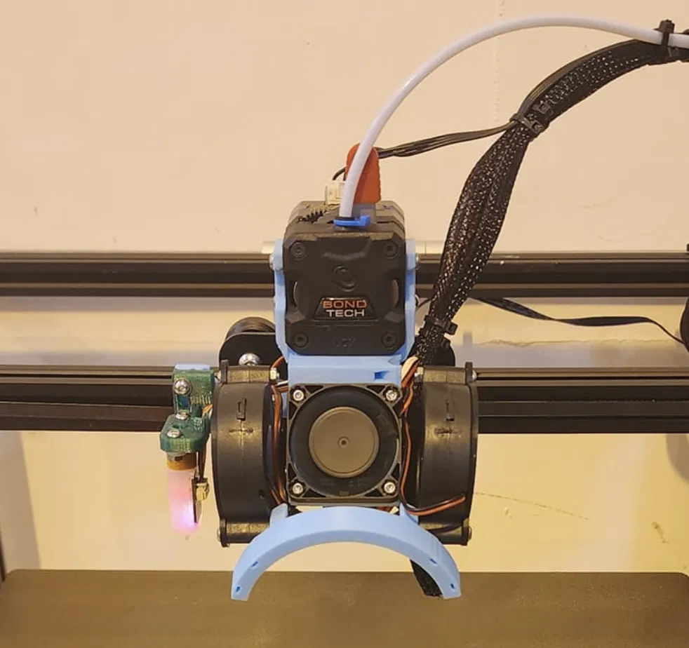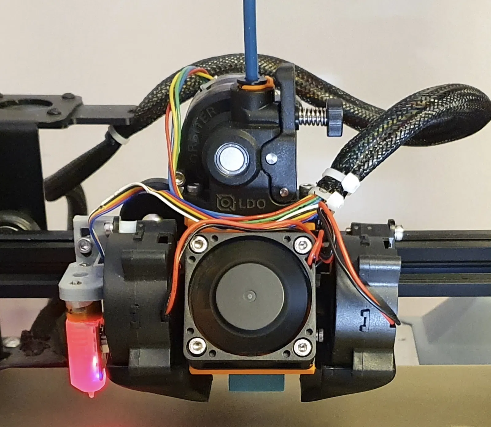 Các bộ phận gắn đầu in nóng KHÔNG ĐƯỢC in bằng PETG (quá nhiều độ uốn tự nhiên). In các bộ phận gắn đầu in nóng bằng PLA+, ASA, ABS, PA-CF hoặc PC-CF.