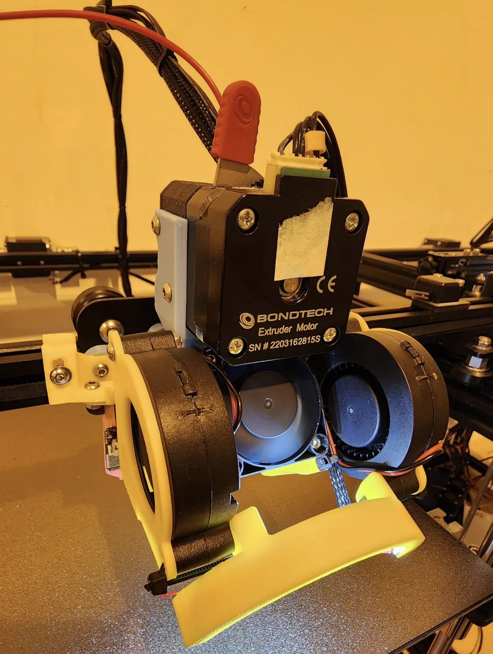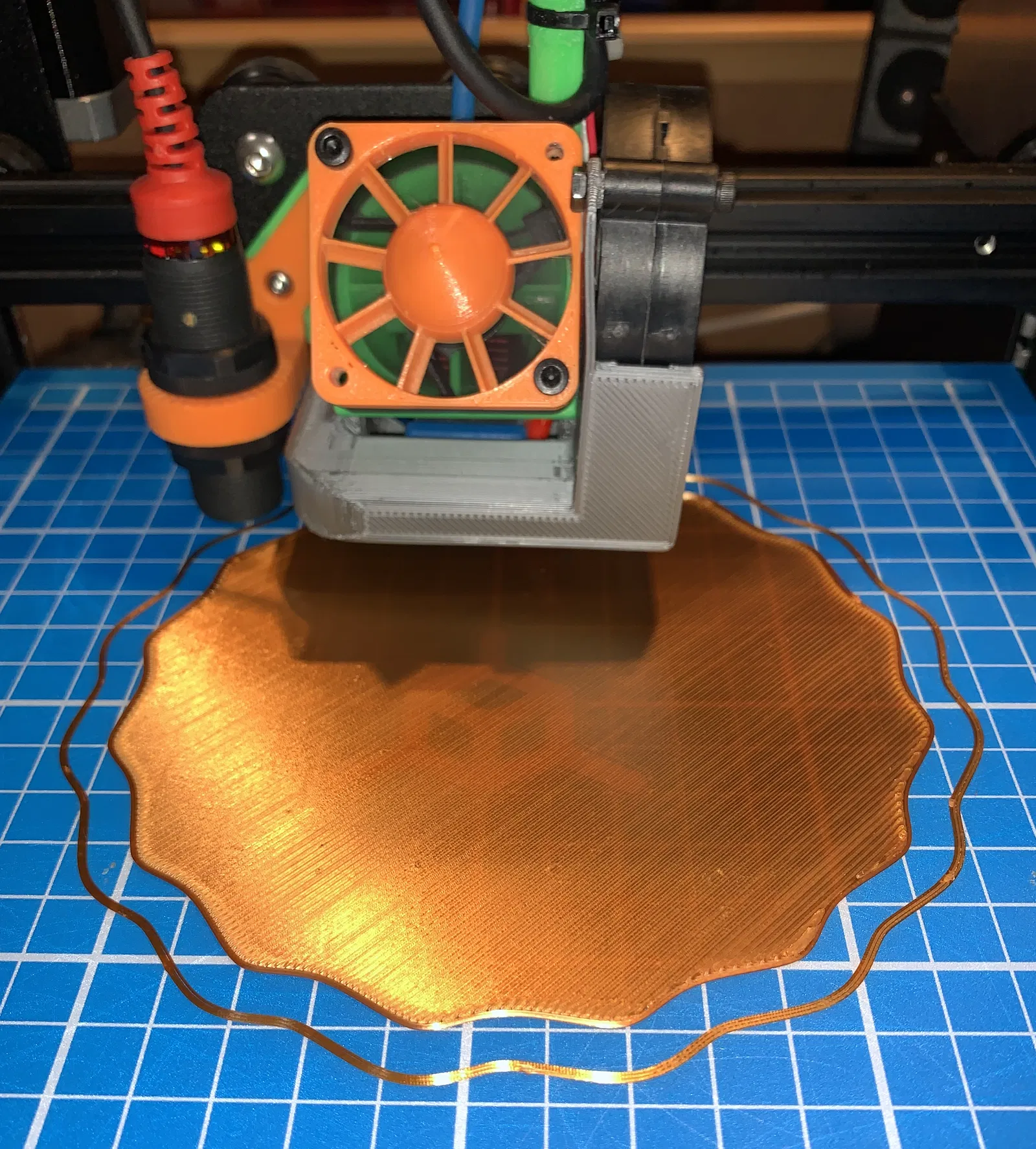 Đặt infill từ 35% đến 50%. Chỉ sử dụng hỗ trợ tự động từ bàn in (có thể thưa thớt; bạn cần ÍT hỗ trợ hơn bạn nghĩ!). Các ống dẫn làm mát nhẹ có thể sử dụng một vài hỗ trợ được đặt đúng vị trí ngay bên trong chi tiết (KHÔNG bên trong ống dẫn). Tôi đặc biệt khuyên bạn nên sử dụng tất cao su cho đầu in nóng của mình trong mọi trường hợp.