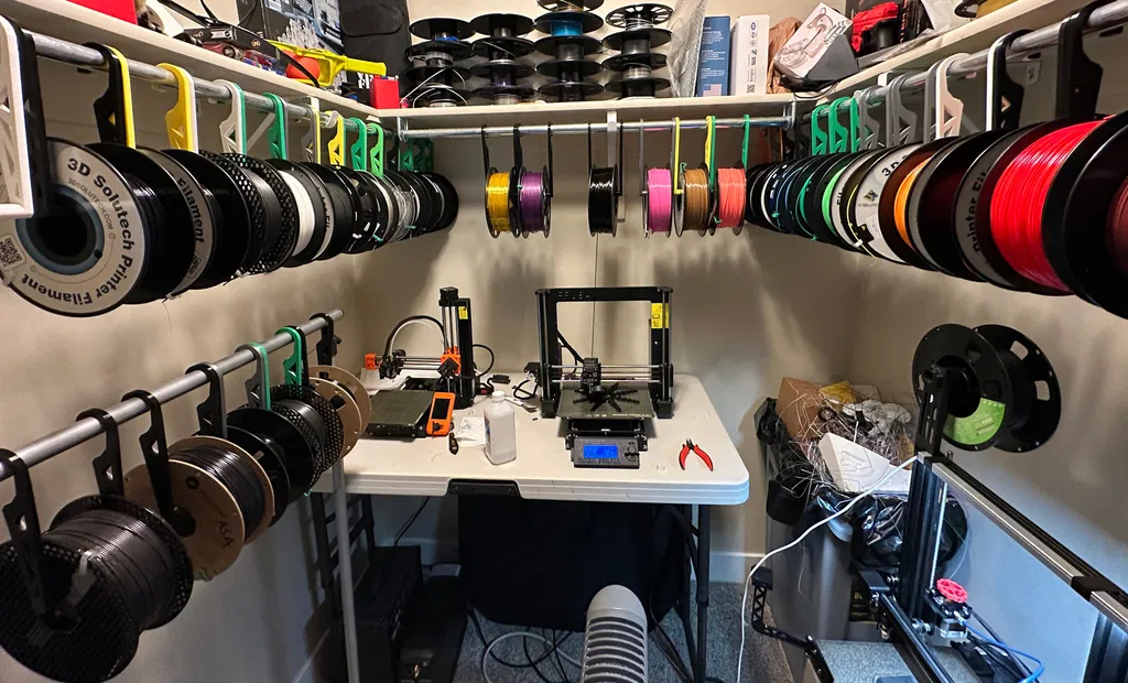 Đây là bộ giữ cuộn dây tóc 2 mảnh, được thiết kế để treo vào thanh treo quần áo hoặc thanh gỗ và để dễ dàng thay đổi cuộn dây. Phù hợp với tất cả các loại cuộn dây 1kg. Tuyệt vời để lưu trữ cuộn dây tóc, cũng như in ấn từ chúng khi chúng được treo (xem hình ảnh).