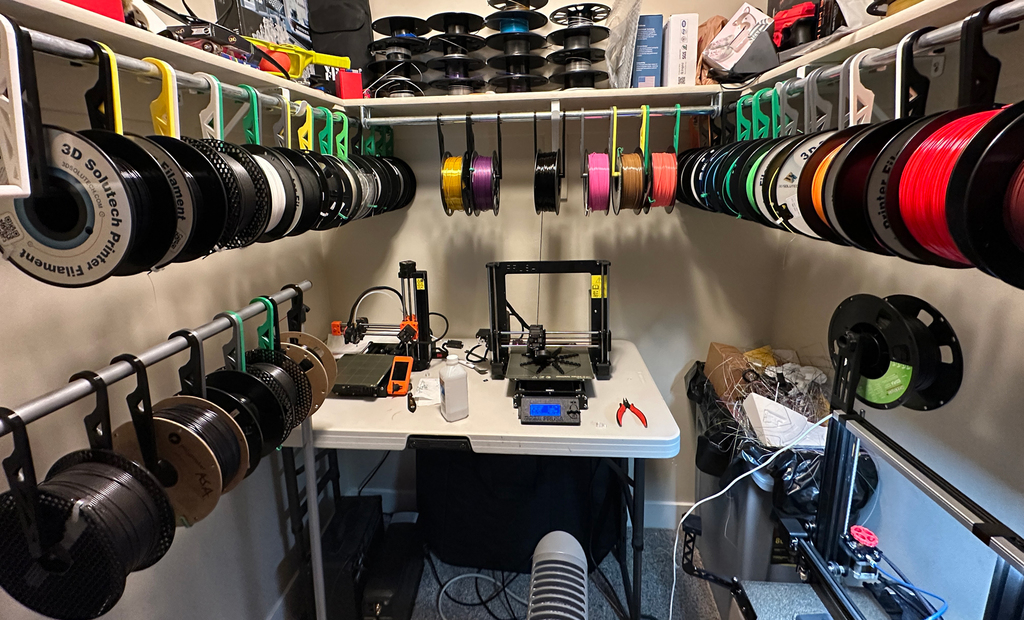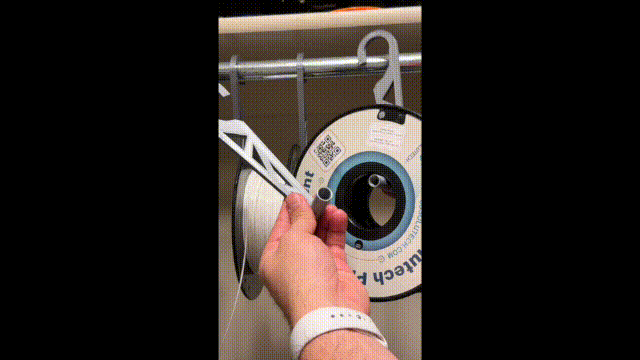 Giá đỡ cuộn dây tóc 2 mảnh, treo được vào thanh quần áo hoặc thanh gỗ, dễ dàng thay cuộn. Chứa mọi loại cuộn 1kg. Dùng để lưu trữ hoặc in trực tiếp khi đang treo.