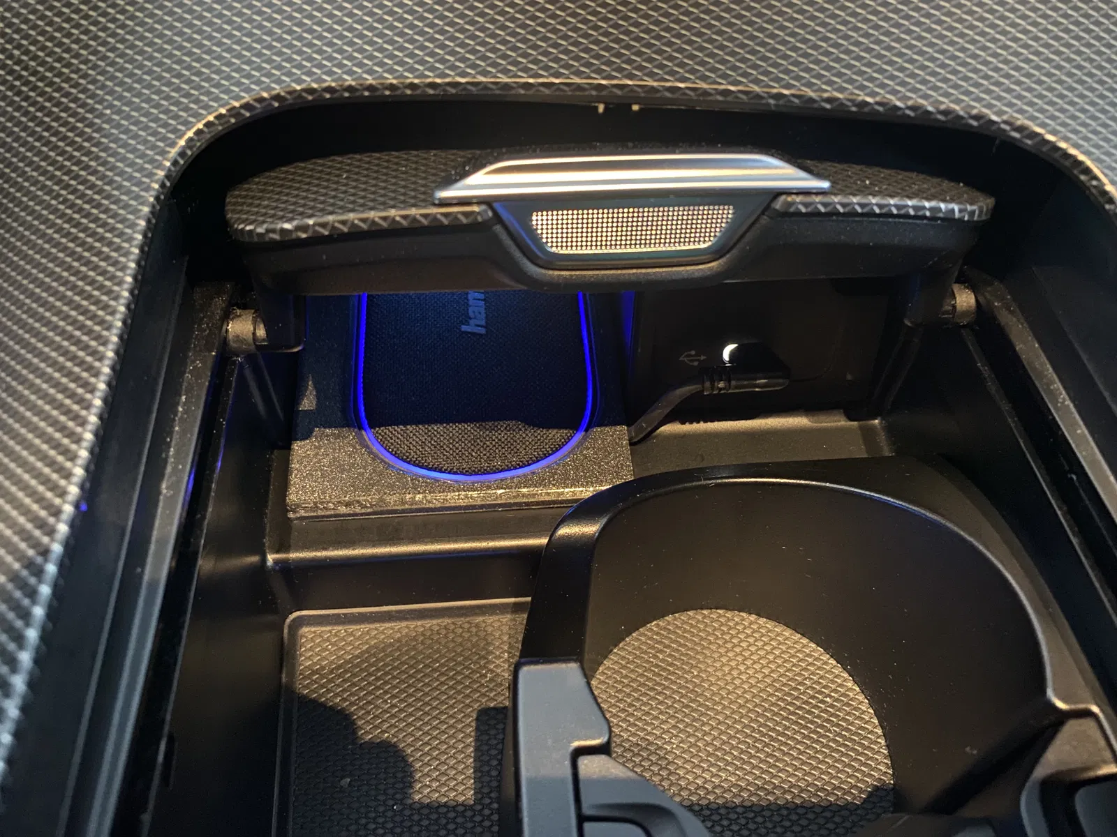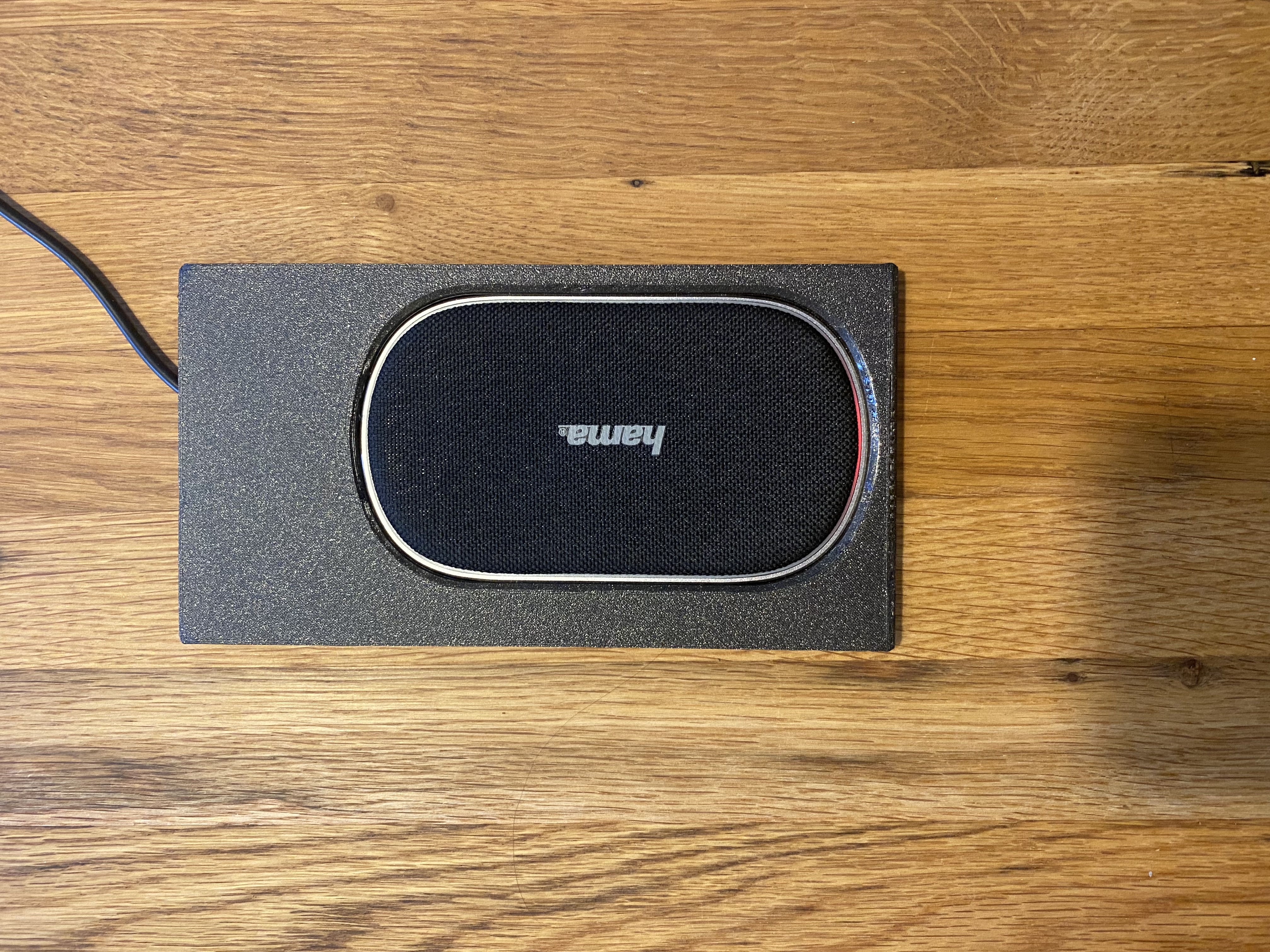 Tấm sạc không dây nguyên bản không được trang bị. Vì vậy, tui đã tìm một tấm sạc phù hợp với cùng không gian. Tui tìm thấy HAMA FC-10 fabric (https://amzn.eu/d/e8aBpDB) và tạo một khung lắp với hướng dẫn cáp, để trông nó đẹp hơn.