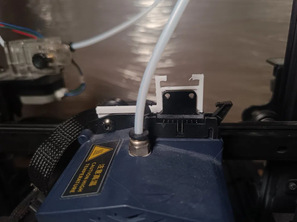 Để lắp giá đỡ, bạn sẽ cần ngắt kết nối ống Bowden, tháo cáp phẳng và tháo bộ dẫn hướng cáp phẳng khỏi xe trượt. Sau khi hoàn tất, giá đỡ có thể được lắp đặt với các bước sau: