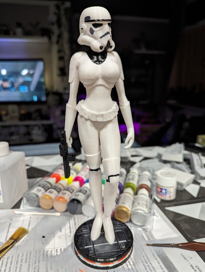Mô hình Nữ Stormtrooper được làm lại, phiên bản remix độc đáo cho người hâm mộ Star Wars và những người yêu thích figure. In STL bằng PLA để có kết quả tốt nhất.