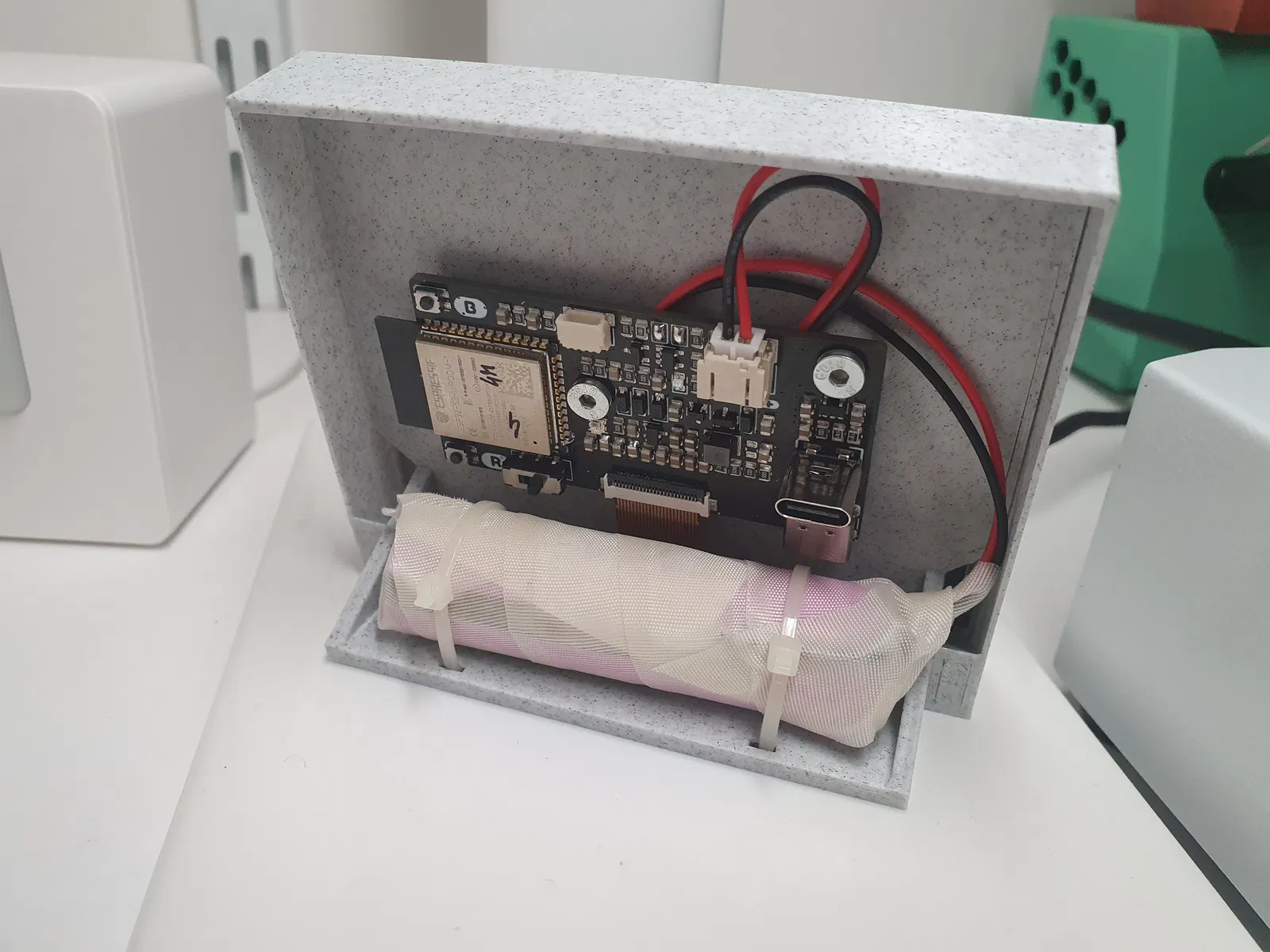 - Gắn pin. Bạn có thể dùng các rãnh ziptie, hoặc băng dính hai mặt để gắn đế pin 18650. Video hướng dẫn: #### Sử dụng cho mục đích thương mại Trong trường hợp bạn muốn bán thiết kế này, hoặc chỉnh sửa và bán, hãy liên hệ với tôi để chúng ta có thể thỏa thuận cụ thể. ### Chỉnh sửa Thoải mái remix và chỉnh sửa. File Fusion 360 đã được cung cấp. ### Phần cứng ##### PCB Điều Khiển PCB được làm tùy chỉnh bởi Dronecz. Kho lưu trữ Github: https://github.com/dronecz/ES3ink Twitter: @dronecz Printables: https://www.printables.com/cs/@Czechmaker_235513 Có thể sẽ có trên Tindie, hoặc bạn cứ nhắn tin trực tiếp cho anh ấy. ##### Cảm biến Nhiệt độ Cảm biến LaskaKit SHT40 Có sẵn tại: https://www.laskakit.cz/laskakit-sht40-senzor-teploty-a-vlhkosti-vzduchu/ Hoặc trên Aliexpress. Đừng quên cáp QWIIC (usup). ##### Pin Không gian đủ cho pin 18650, dù là có dây, bạn có thể ziptie vào đế bằng các rãnh được cung cấp. Một lựa chọn khác là dùng băng dính hai mặt để dán đế pin 18650. ##### Bu lông Khung và Tường sau (BackWall) được khớp với nhau, nhưng tôi khuyên bạn nên thêm bu lông M3x4-6. PCB được giữ bằng M3x4-6. Cảm biến được giữ bằng vít 2mm. ##### Màn hình Ký hiệu flex: HINK-E042A14-A0, SYX1802 Thư viện GxEPD2: