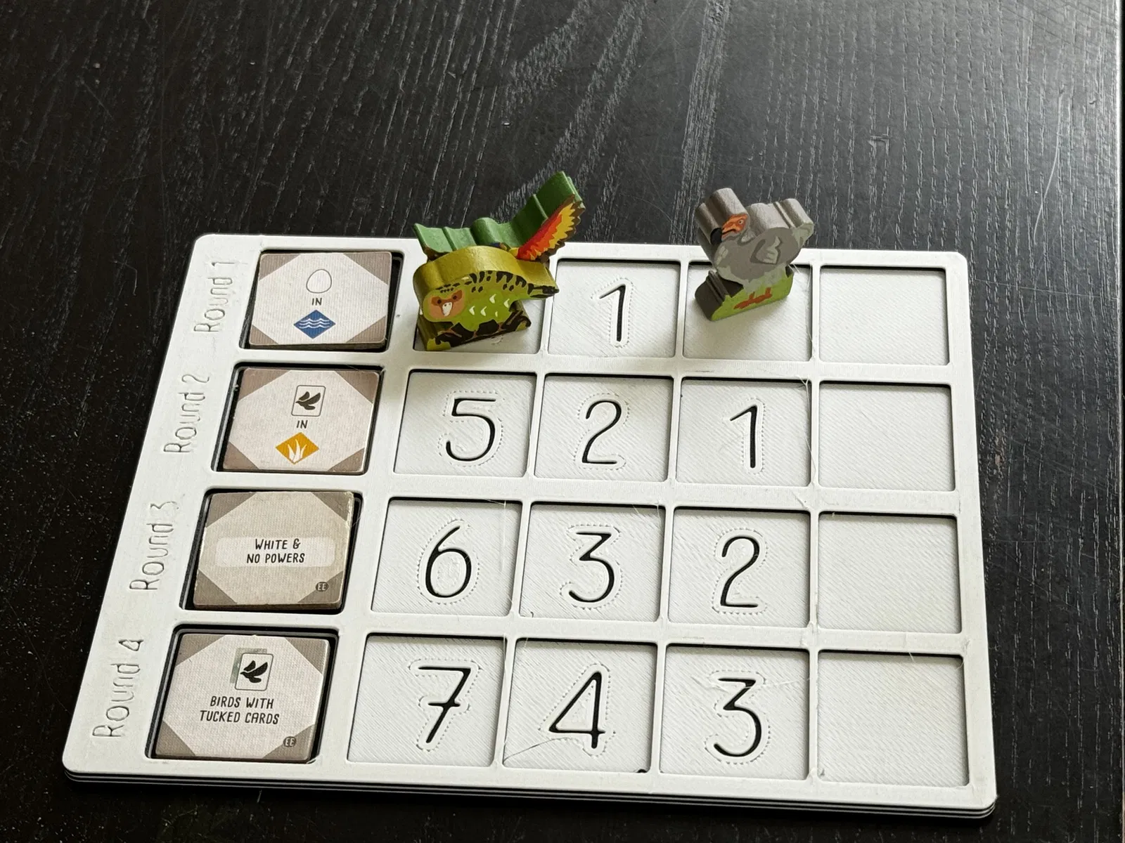 Bộ thẻ Mục Tiêu Vòng Đấu Wingspan có các hốc sâu giúp giữ cố định thẻ mục tiêu và quân cờ. Chữ được khắc âm, dễ tô màu. Bản in với cài đặt tối ưu cho in 3D, đảm bảo chi tiết sắc nét và hoàn thiện đẹp.
