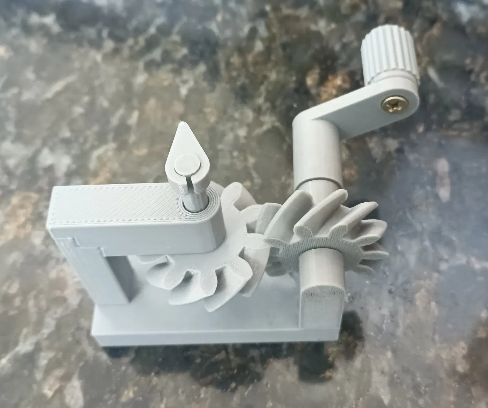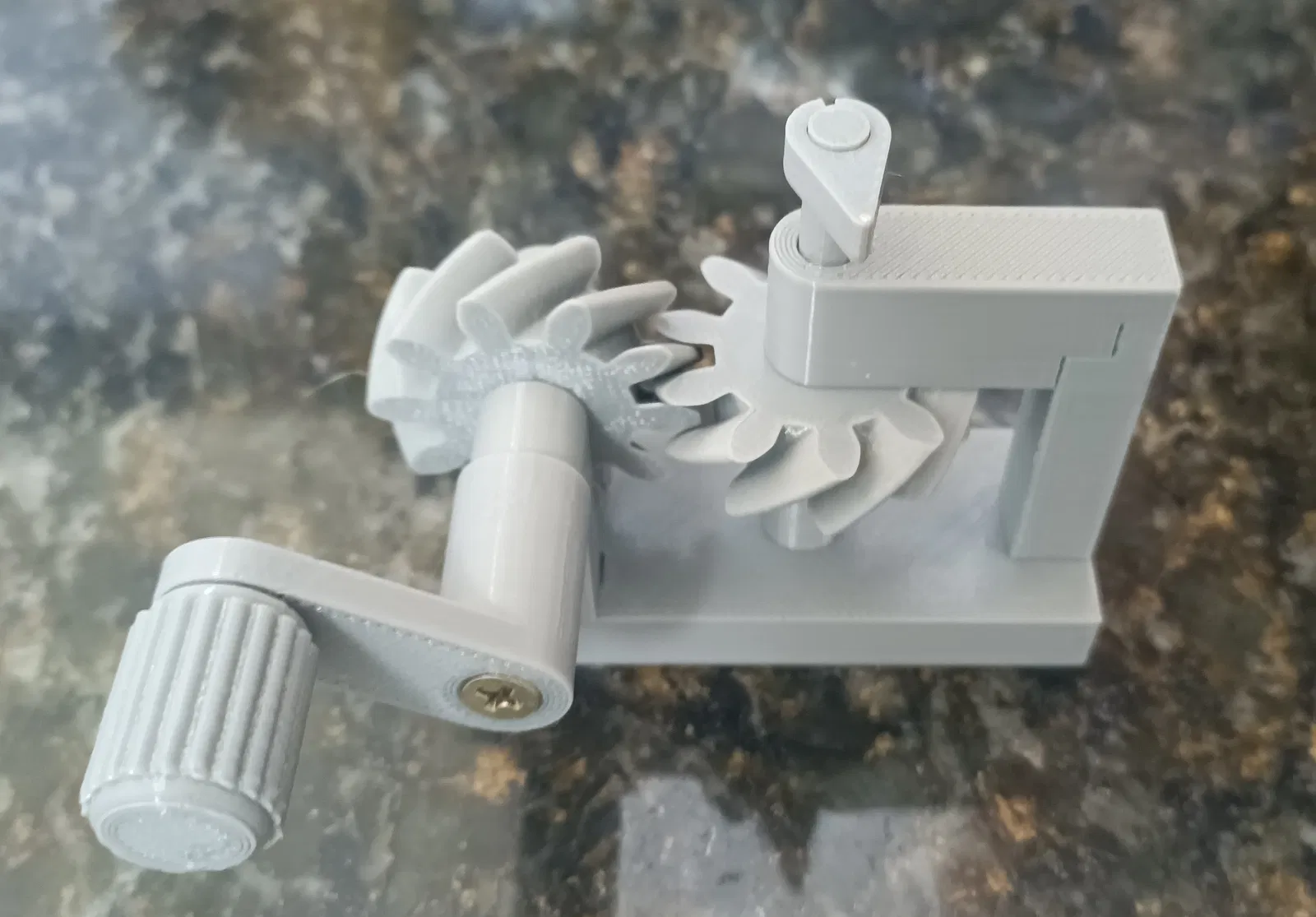 Mô hình giáo dục này minh họa cách một cặp bánh răng xoắn ốc ăn khớp với các trục quay ngược chiều nhau. Mô hình yêu cầu 05 vít gỗ đầu phẳng (3x12 mm) và nên được in bằng nhựa PETG để đạt kết quả tốt nhất.