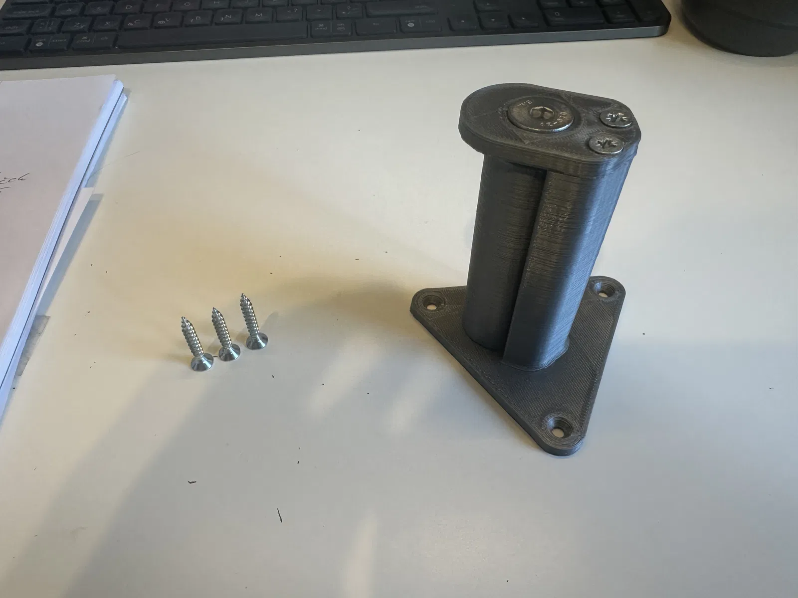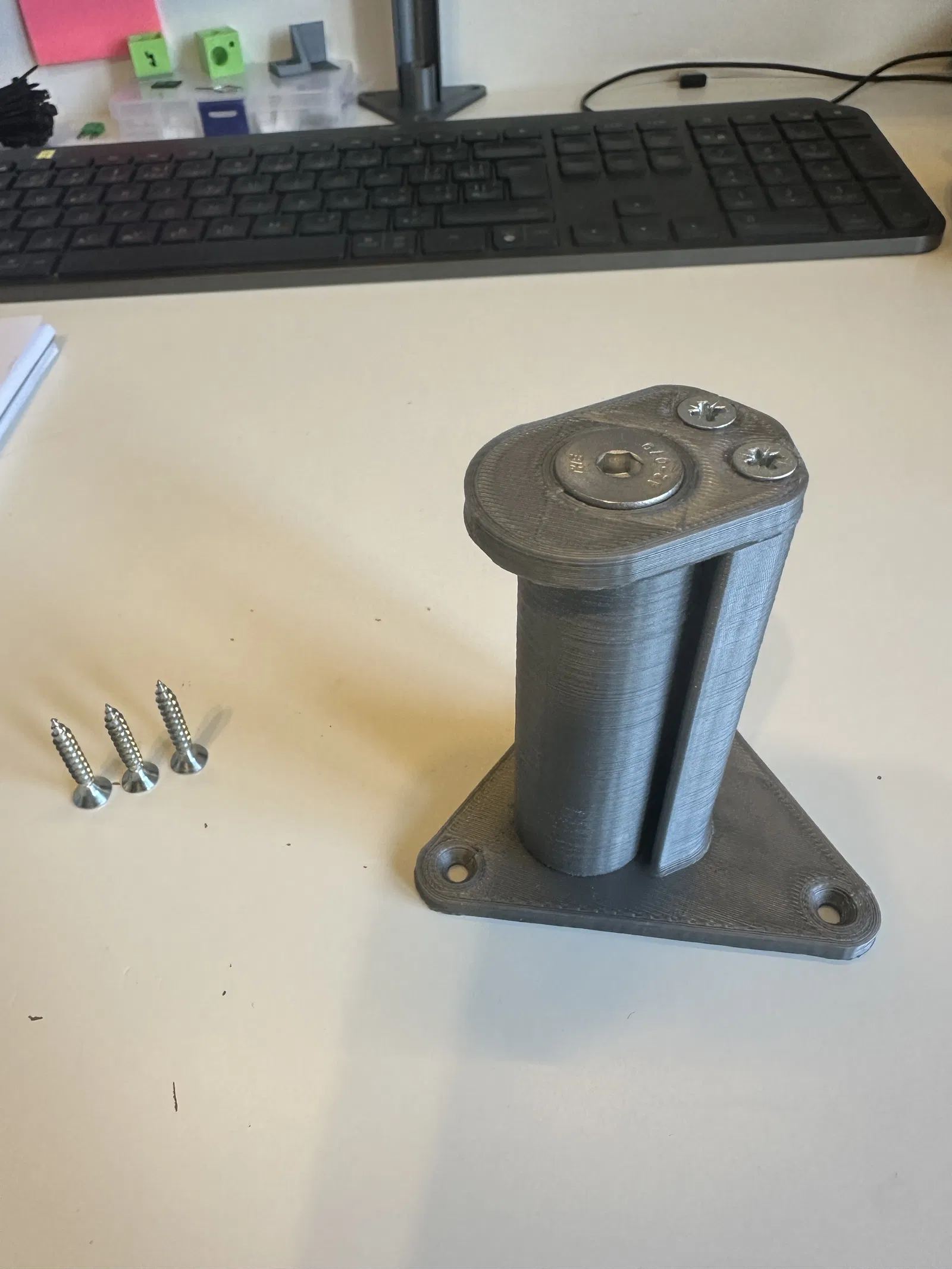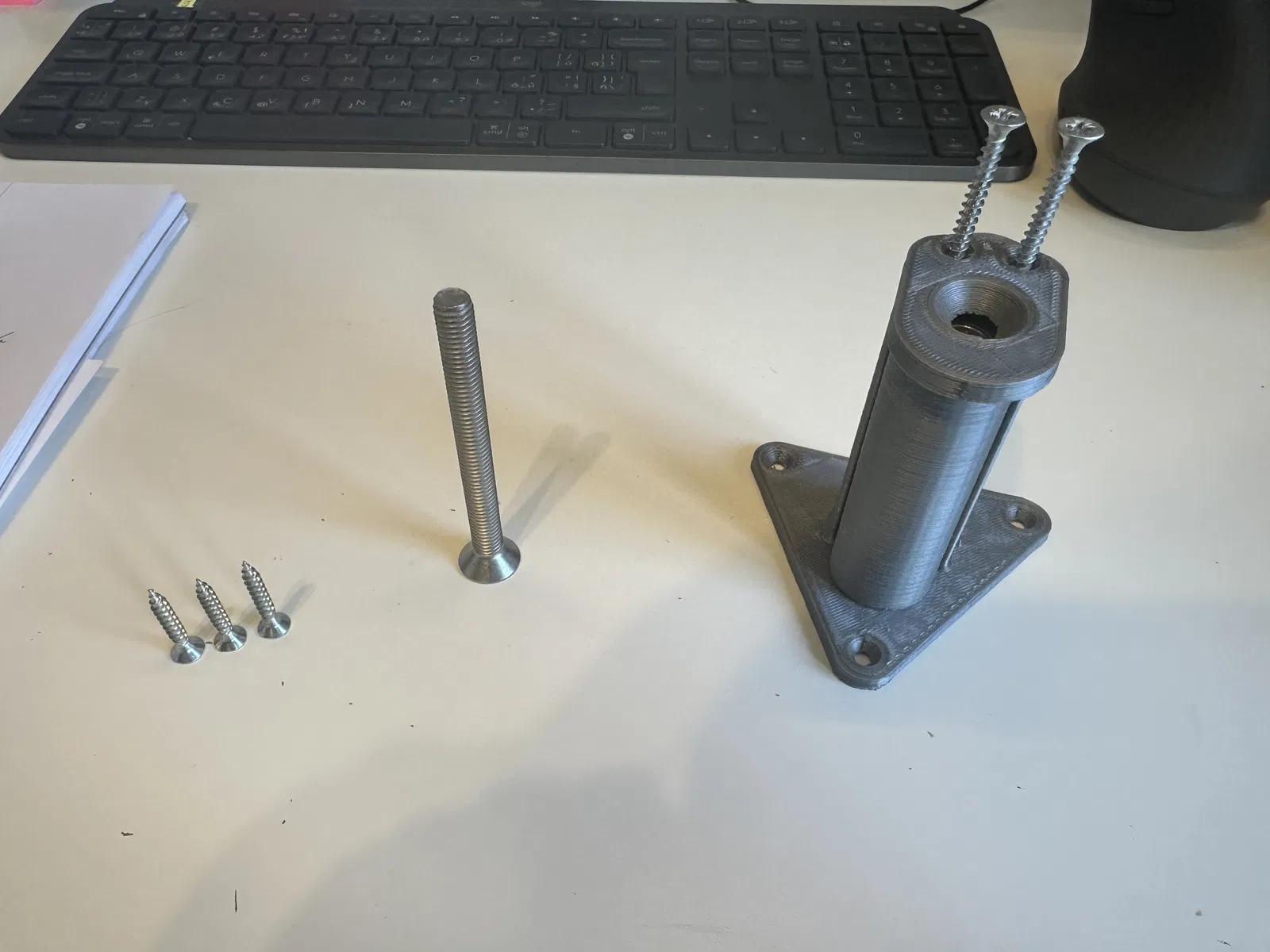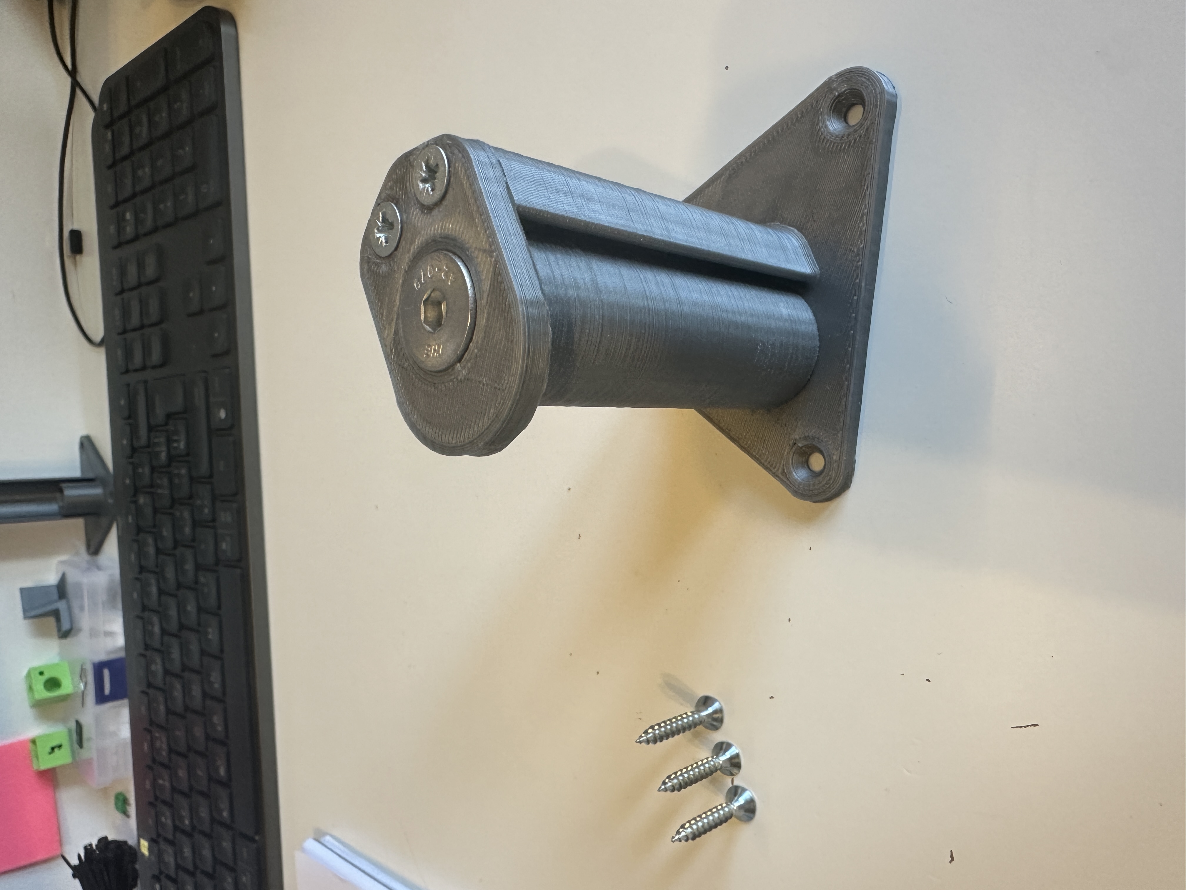 Cuộn dây in 3D được tháo ra không bị cản trở. Gắn cố định vào tường. Phiên bản này dùng vòng bi 608, bu lông M8 và ốc vít có sẵn, lắp ráp đơn giản theo hình ảnh.