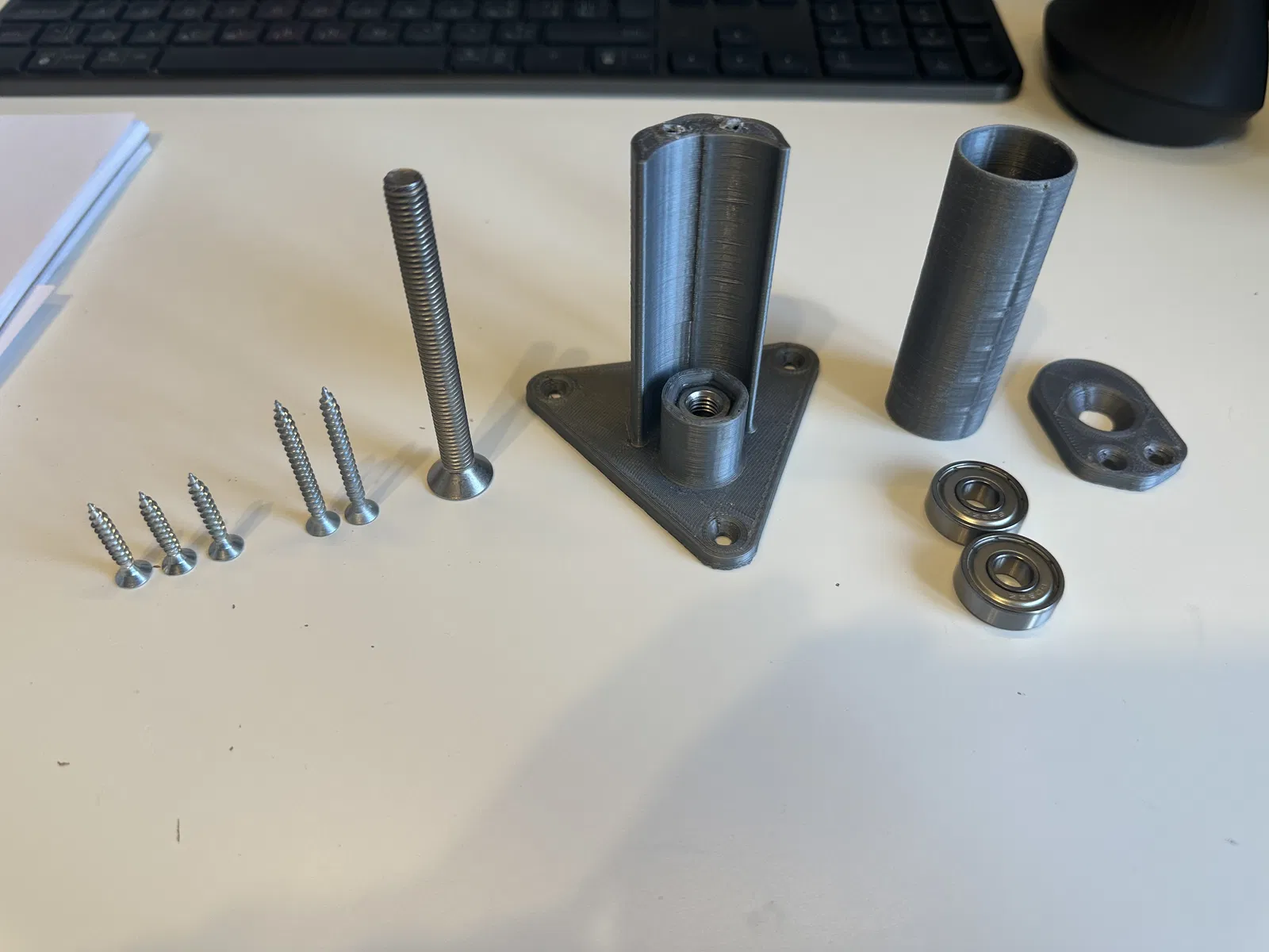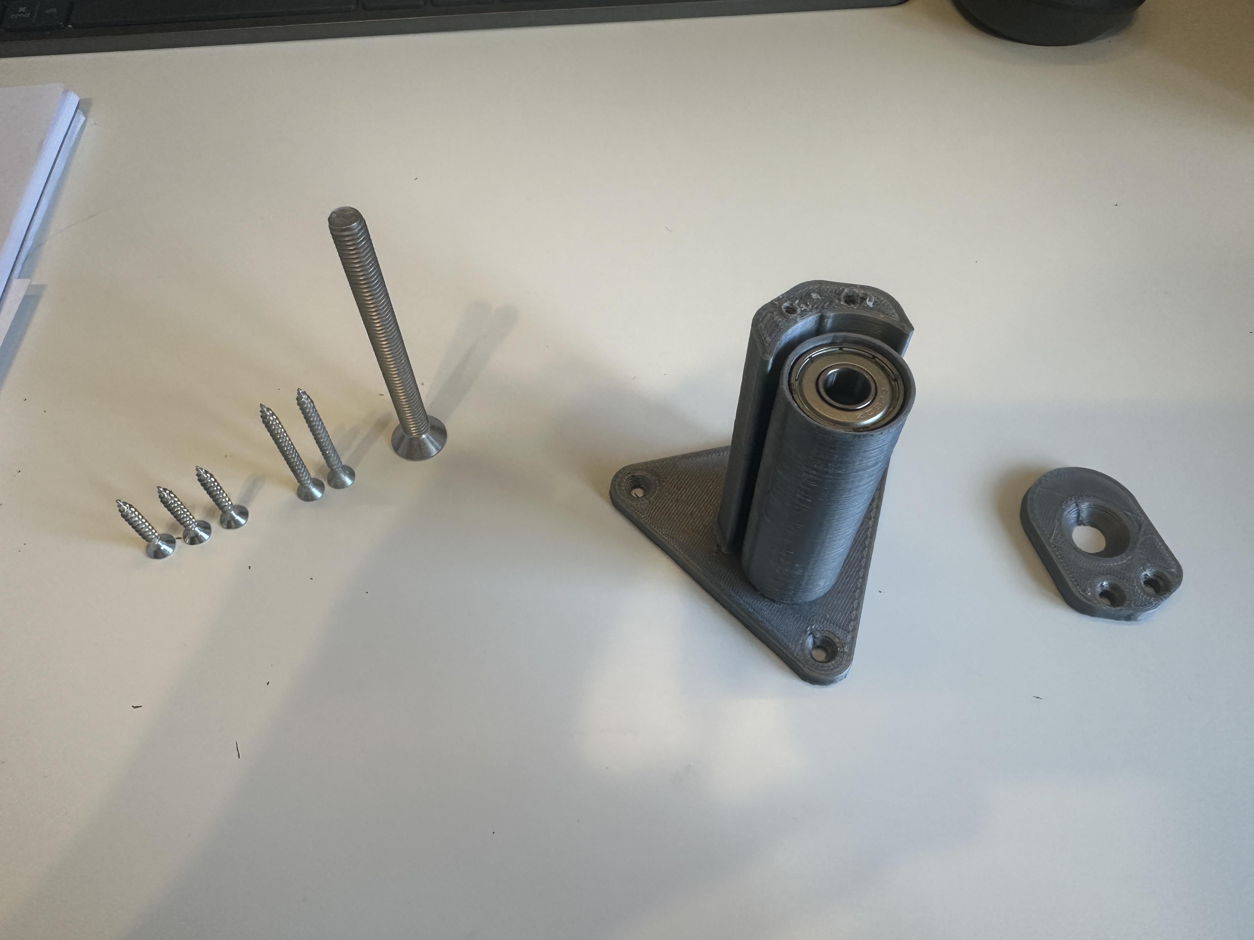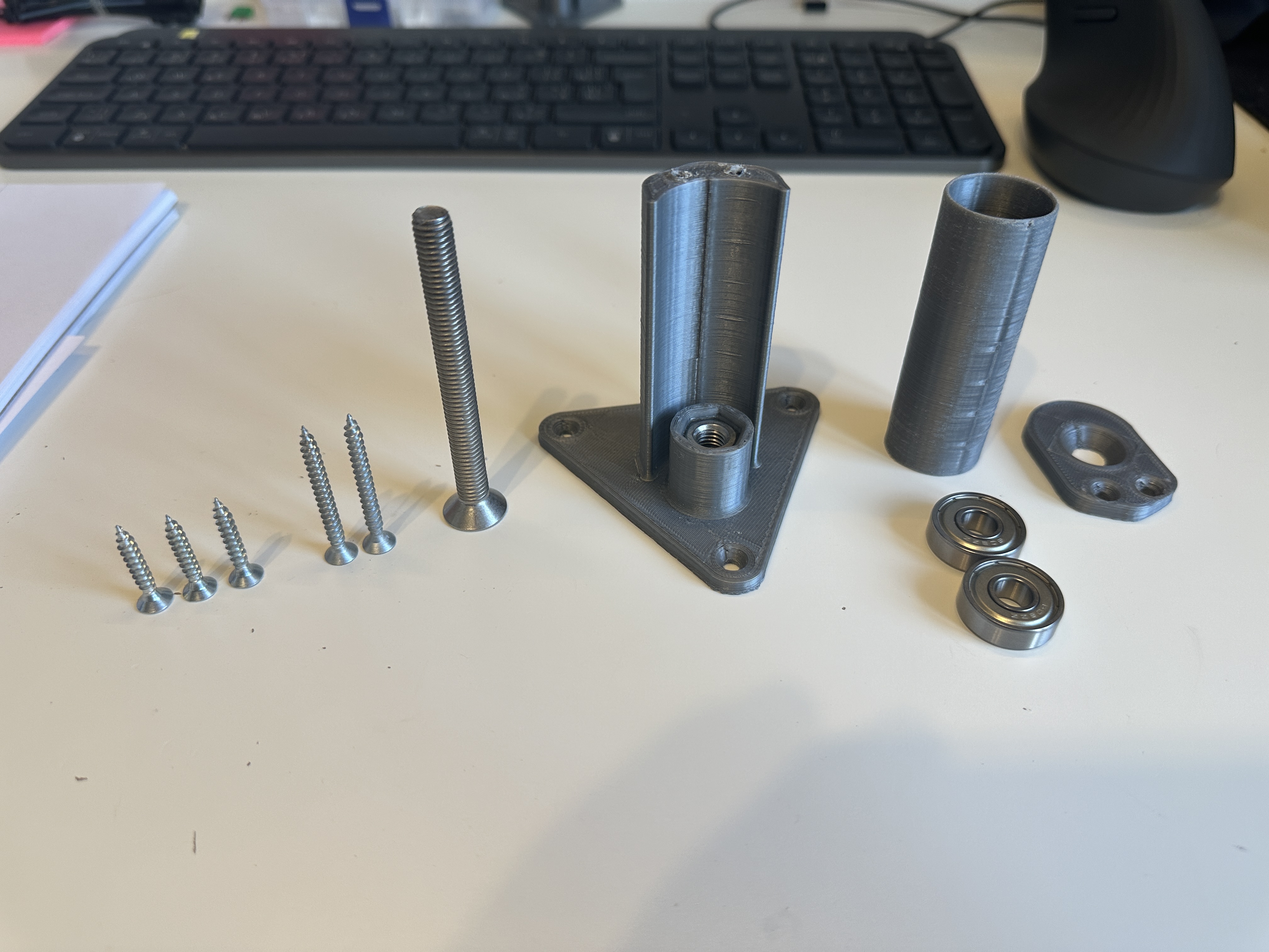 Tui dùng vòng bi 608 thông dụng, bu lông M8 kèm đai ốc và ốc vít theo những gì có sẵn. Lắp ráp theo ảnh nha. Lưu ý là ảnh chụp là từ phiên bản chưa được cải tiến.