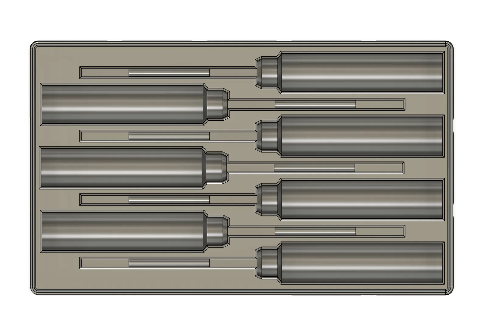 Việc chỉnh sửa này cho phép khay chứa bộ 7 tua vít, làm tăng tính hữu dụng và đa dụng. Hơn nữa, tui đã kéo dài tay cầm lên 91mm, nâng tổng chiều dài của mẫu tua vít lên khoảng 176mm. Sự cải tiến này đảm bảo cảm giác cầm nắm thoải mái và chắc chắn hơn, cải thiện trải nghiệm người dùng tổng thể.
