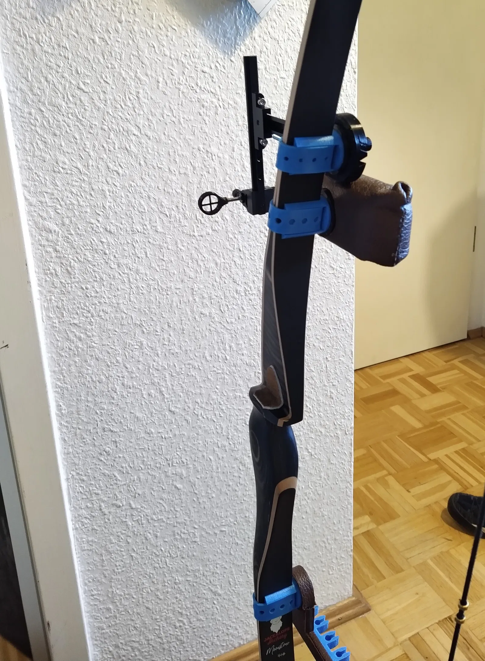 Adapter cho cung truyền thống không có lỗ gắn tiêu chuẩn. Adapter có thể dùng để gắn nhiều loại phụ kiện khác nhau như kính ngắm, đèn pin, v.v. Phần kẹp nên in bằng vật liệu dẻo để tránh làm hỏng bề mặt cung.