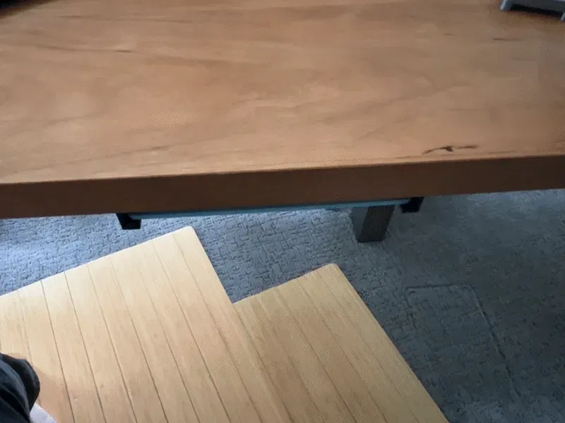 Yêu Streamdeck của tôi, nhưng tôi không muốn nó chiếm không gian trên bàn khi tôi không sử dụng, vì vậy tôi đã tạo ra “ngăn kéo” này gắn vào mặt dưới của bàn làm việc bằng 2 chiếc vít gỗ.