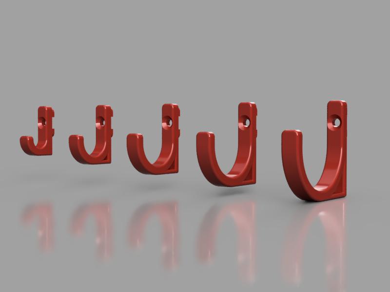 Tui cần mấy cái móc treo đồ mới cho bảng Skadis của tui, lúc thiết kế tui làm lố tay nên giờ có cả một bộ sưu tập với đủ loại hình dáng và kích cỡ luôn. Có nhiều cách xài móc lắm, hy vọng bạn sẽ tìm được cái ưng ý. Mấy cái móc này gắn vô bảng IKEA Skådis bằng T-nut, nghĩa là móc gắn chắc chắn, xài không có bị lỏng đâu nha. Kích thước ước tính của mấy cái móc thì có trong bảng dưới đây, tất cả mấy cái móc đều rộng 7mm (0.3"). Tên móc XS S M L XL Móc 9mm (0.4") 15mm (0.6") 21mm (0.8") 27mm (1.1") 33mm (1.3") Móc chữ U 8mm (0.3") 14mm (0.6") 20mm (0.8") 26mm (1.0") 32mm (1.3") Chốt 10mm (0.4") 15mm (0.6") 20mm (0.8") 25mm (1.0") 30mm (1.2") Móc nghiêng 13mm (0.5") 18mm (0.7") 23mm (0.9") 28mm (1.1") 33mm (1.3") Móc phẳng 13mm (0.5") 18mm (0.7") 23mm (0.9") 28mm (1.1") 33mm (1.3") Móc thẳng 25mm (1") 35mm (1.4") 45mm (1.8") 55mm (2.2") 65mm (2.6") Móc Rhino 19mm (0.7") 26mm (1") Nếu bạn đang tìm thanh treo đồ, thử xem cái này nè: Thanh treo đồ cho Skadis ##### Lắp đặt Mấy cái móc này gắn vô bảng Skadis bằng T-nut, loại T-nut này vừa với ốc M3. T-nut cho độ bám tốt và chắc chắn, dễ gắn với tháo ra bằng tua vít. Có hai loại lỗ trên móc nha, một loại lỗ khoét sâu và một loại lỗ phẳng, tùy loại ốc bạn xài mà chọn. Ốc dài khoảng 15 mm là vừa. Luồn ốc vô T-nut qua lỗ trên móc rồi vặn cho tới khi T-nut cách mặt sau móc khoảng 2-3mm, sau đó luồn T-nut thẳng qua mấy cái lỗ trên bảng Skadis. Khi bạn siết ốc thì T-nut sẽ xoay và giữ chặt móc vào bảng. Bạn có thể tìm và tải T-nut phù hợp tại: T-nut cho ốc M3 cho Skadis**.**