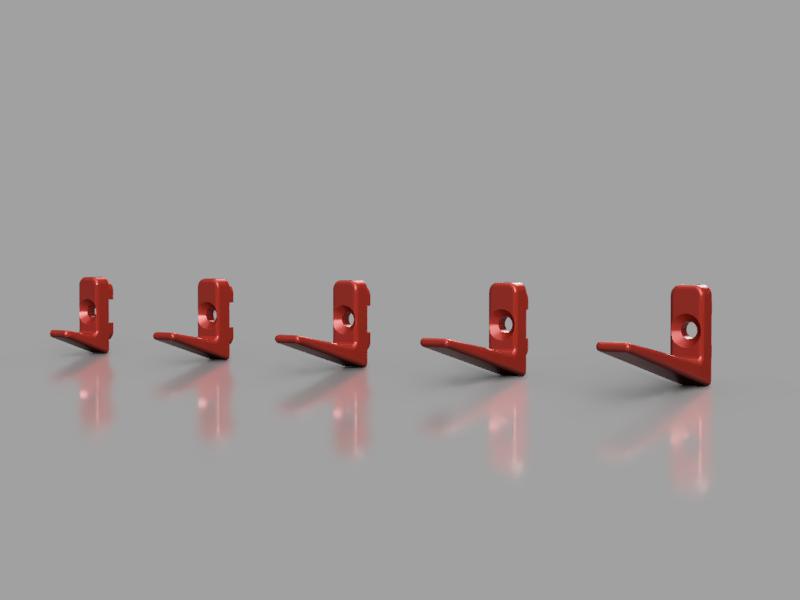 ##### In ấn và cài đặt khi in In mấy cái móc này nằm nghiêng sẽ đẹp nhất nha. Trong file model, mấy bộ phận đã được định hướng sẵn cho phù hợp để in rồi. Dùng PLA chẳng hạn, với chiều cao lớp in 0.2mm hoặc thấp hơn và đường kính đầu phun 0.4mm hoặc nhỏ hơn. Độ dày thành vách ít nhất 3 lớp và độ đặc ruột (infill) từ 50% đến 100% nếu bạn thích móc đặc. Nên có cấu trúc hỗ trợ cho lỗ vặn ốc khi in. ##### Mấy mẫu khác của tui Có thể bạn sẽ thích mấy mẫu khác của tui.