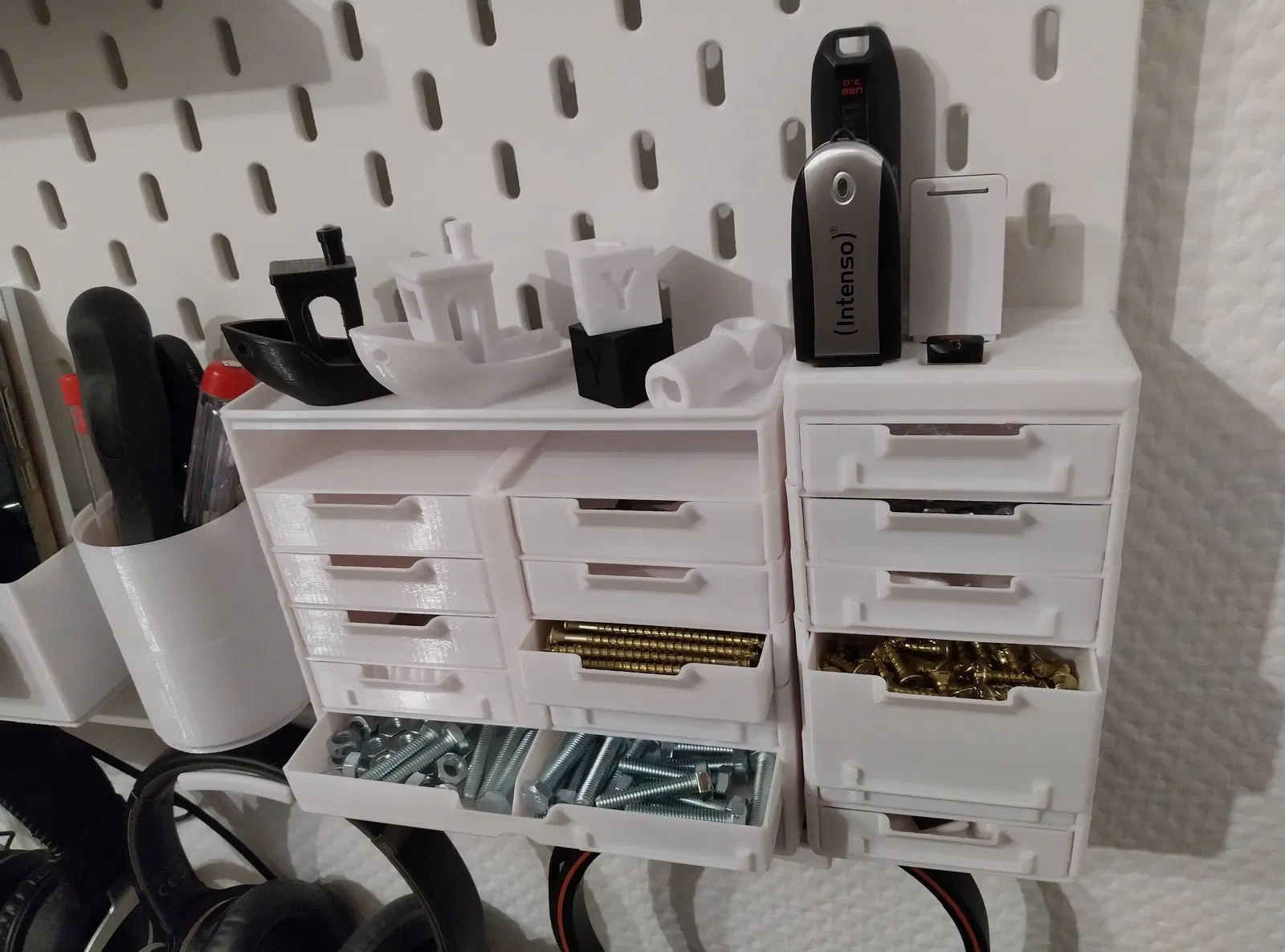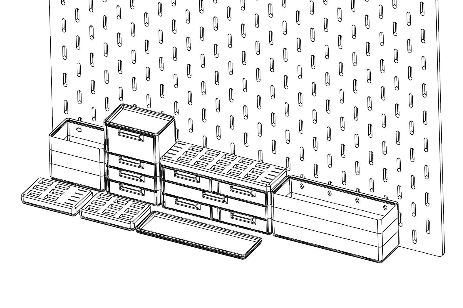 Một hệ thống lưu trữ module, có thể xếp chồng lên nhau, dễ dàng kết nối và tách rời, giúp tiết kiệm không gian tối đa cho bảng pegboard Ikea Skadis của bạn. In dễ dàng, không cần supports, sử dụng ít filament nhưng vẫn đảm bảo độ chắc chắn. Thích hợp để tùy chỉnh và mở rộng theo nhu cầu.