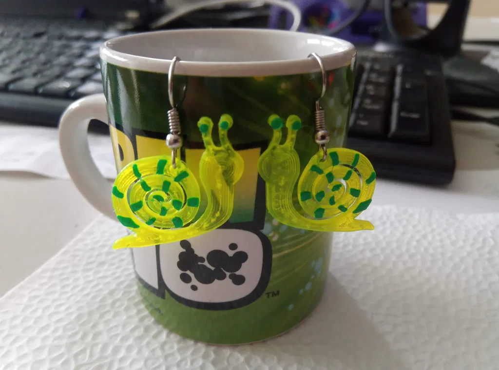 Bông tai ốc sên cực chất, thiết kế làm quà tặng cho cô nàng mê chạy bộ. Có thể in 2 màu khác nhau mà không cần máy in đa sắc, chỉ cần thay đổi màu cho lớp in cuối.