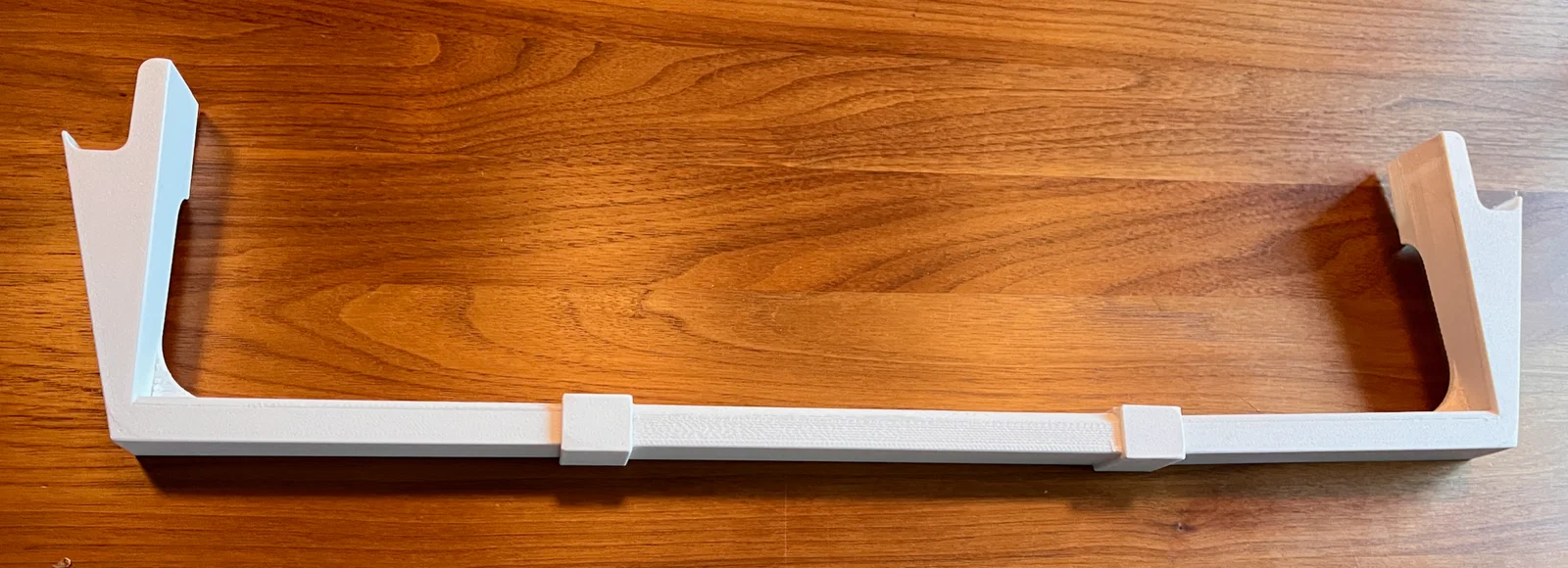 Thanh giữ chai tủ lạnh Electrolux bị gãy, tự thiết kế và in 3D thay thế. Chia làm 3 mảnh, có chi tiết chèn cố định. Yêu cầu hỗ trợ cho mảnh giữa. In bằng PETG, 4 lớp vỏ, 40% cubic infill.