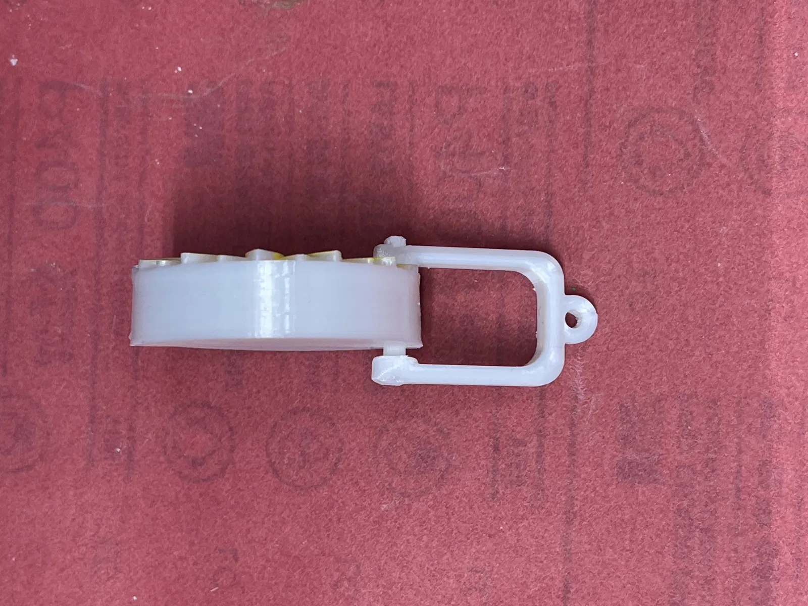 Cái ghim được giữ trong cái kẹp bằng cách ép chặt. Cái kẹp đủ linh hoạt để trượt qua cái ghim khi lắp ráp.