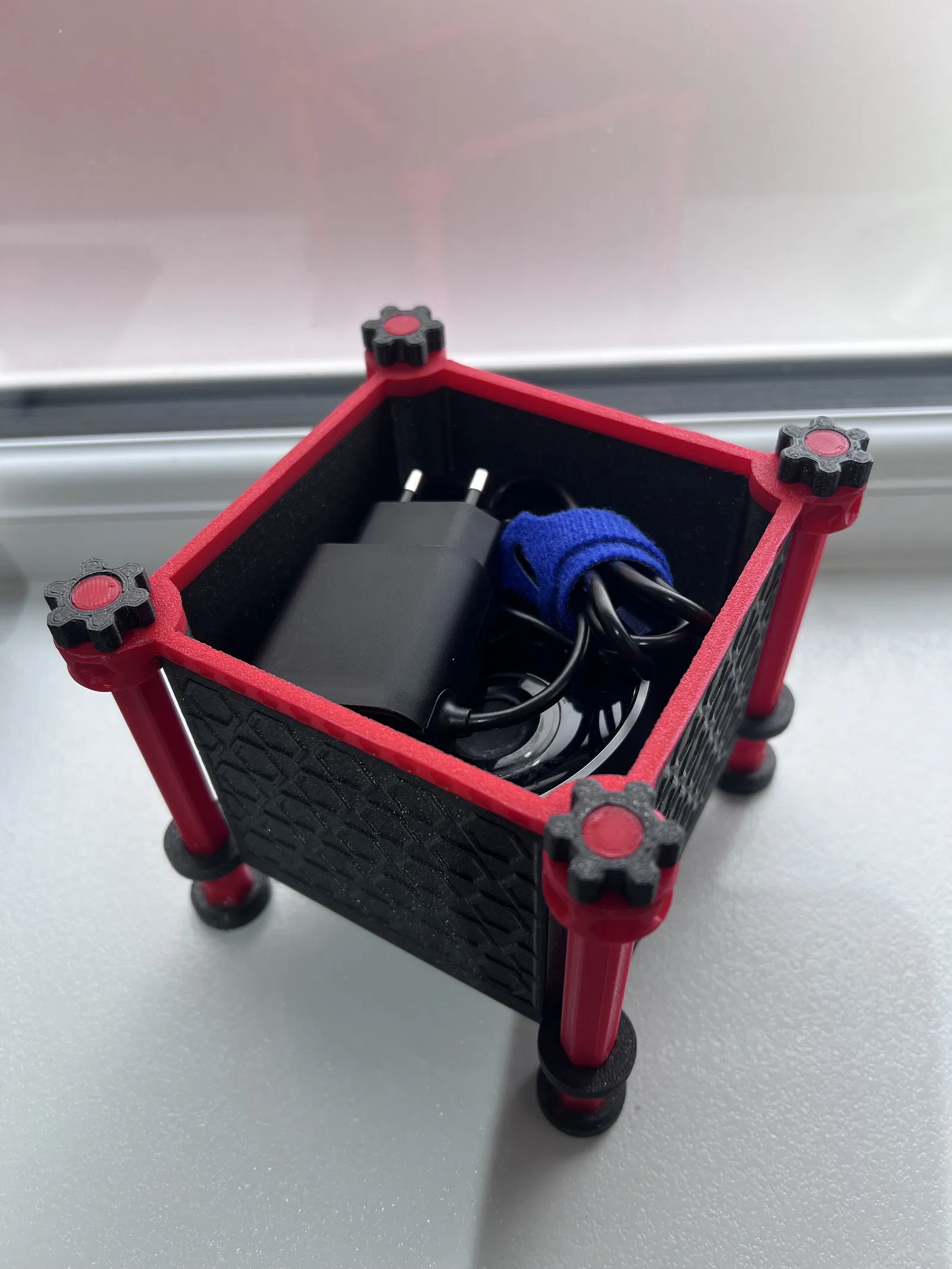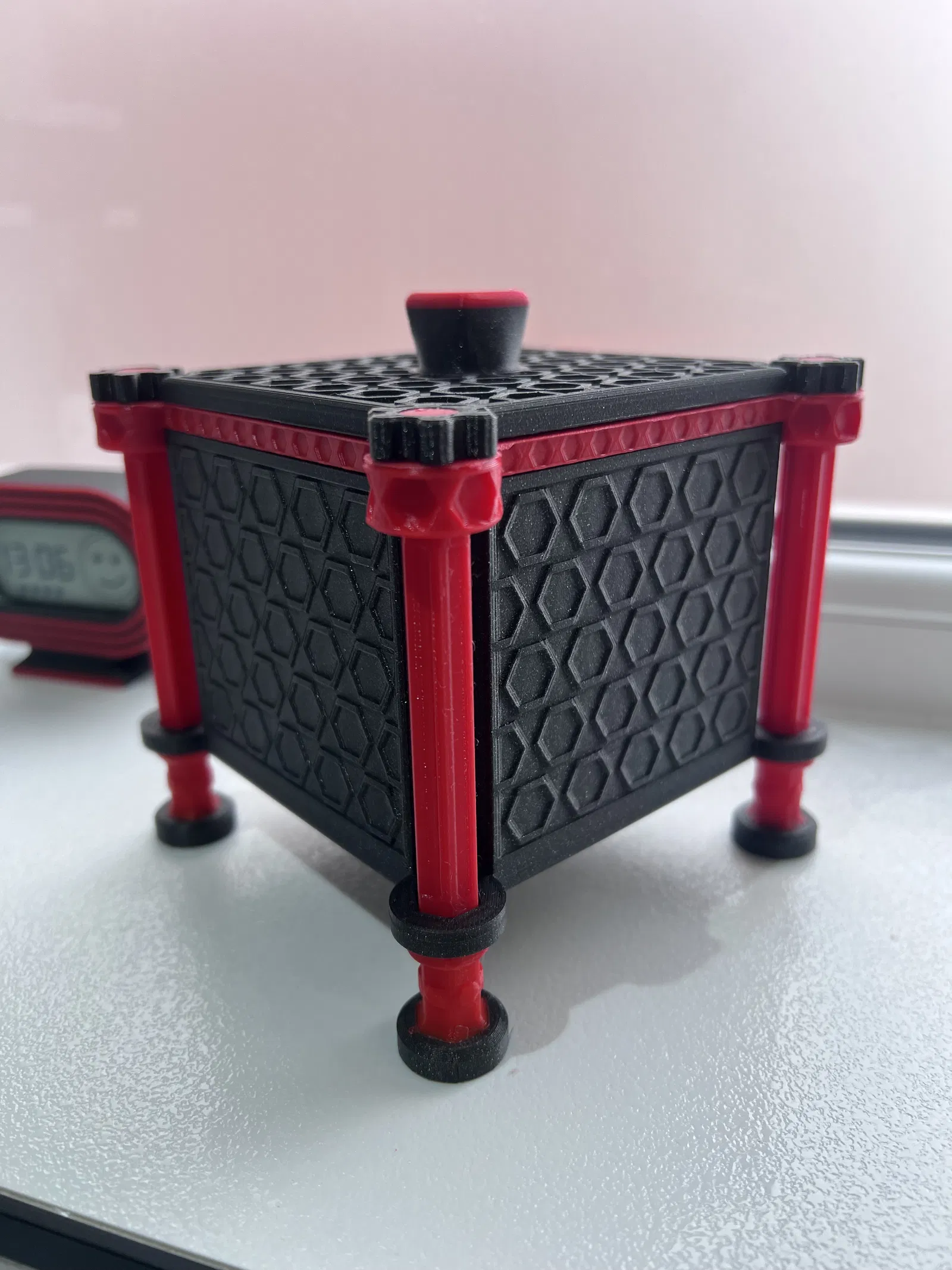 Chiếc hộp trang trí "HEX Design" này được chia thành nhiều bộ phận, với kích thước bên trong là 94mm x 94mm x 74mm. Bạn cần in phần chân và đai ốc với độ đầy ít nhất 25% và không cần vật liệu hỗ trợ. Hoàn hảo để đựng đồ trang sức hoặc vật dụng nhỏ.