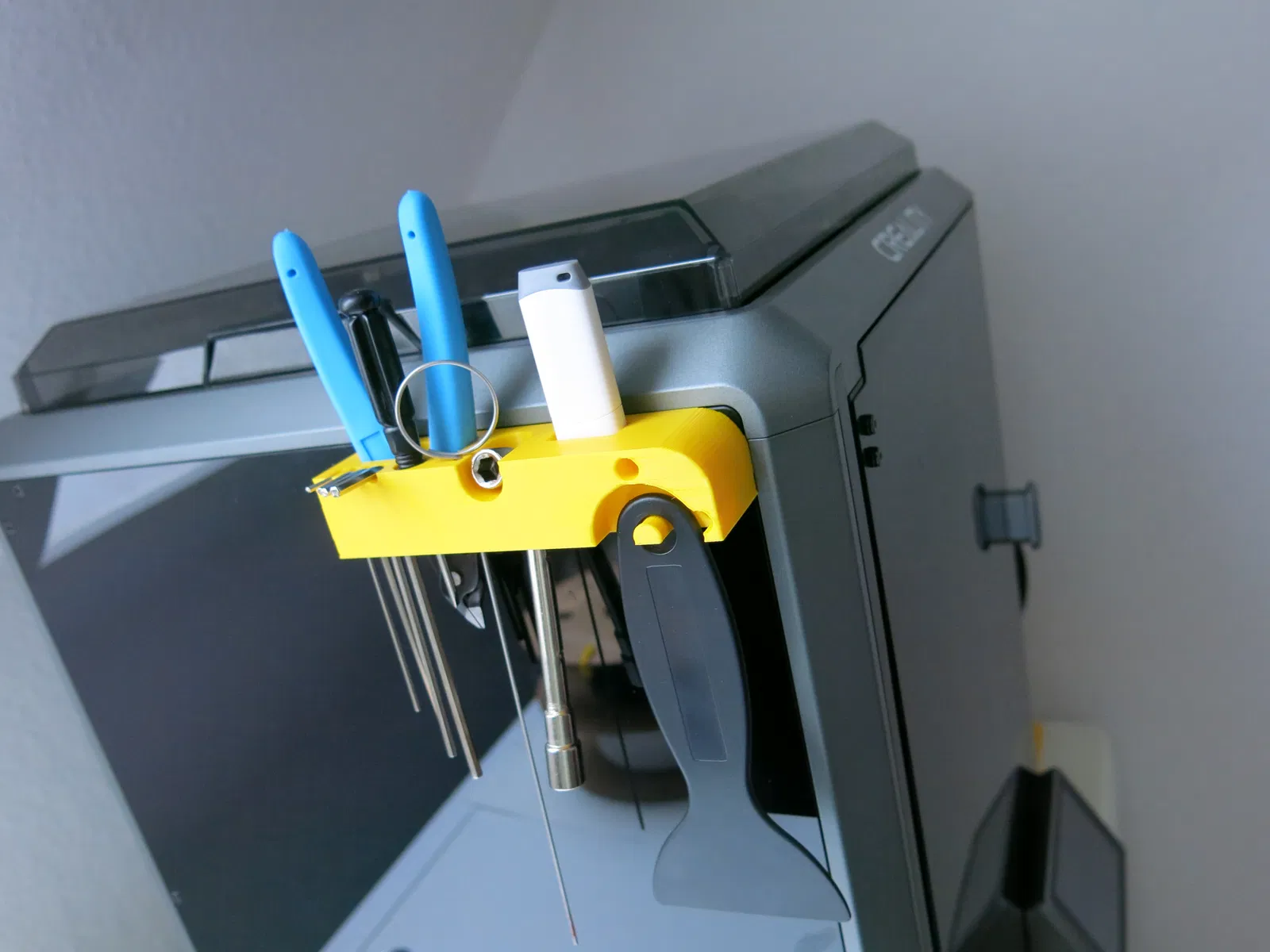 Giá đỡ dụng cụ gắn cố định cho máy in Creality K1, dùng để cất giữ các dụng cụ & USB đi kèm.