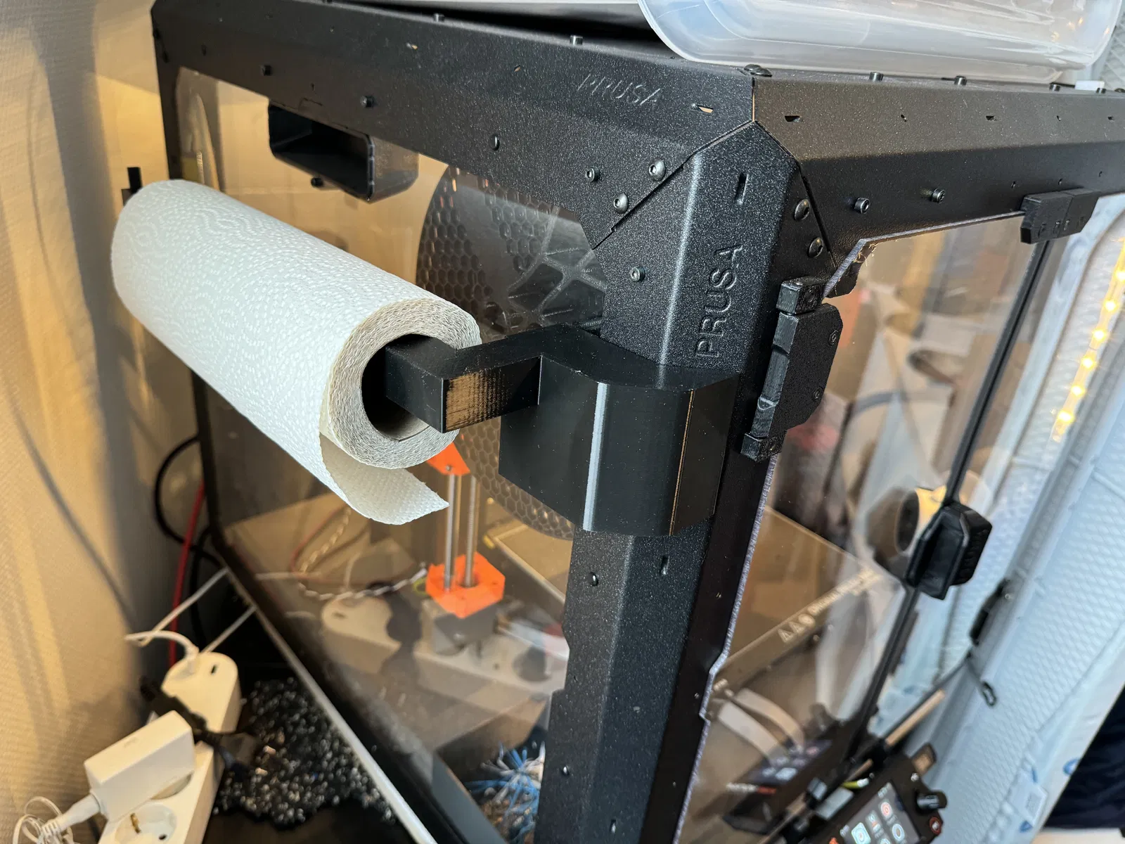 Bản in gồm 2 phần này cho phép bạn treo cuộn khăn giấy. Khi tôi chuẩn bị lau bàn in, nó luôn ở cùng một chỗ thay vì bị unroll một nửa trên bàn bên cạnh.
