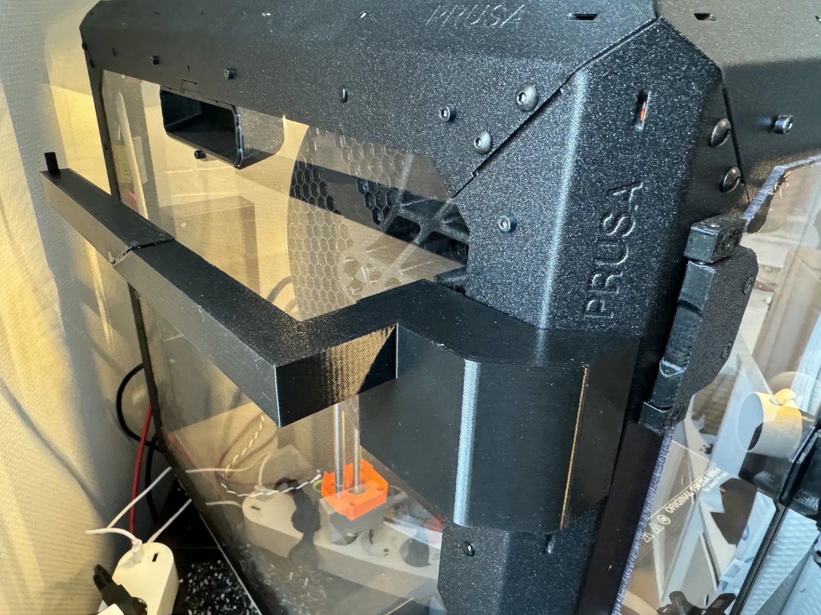 Cài đặt của tôi tôi sẽ sử dụng cho món đồ này: - Đầu phun 0.6mm - 4 lớp vỏ - 4 lớp trên và 4 lớp dưới đặc - Lưới 15% gyroid - Độ cao lớp 0.32mm - Hỗ trợ trên mâm in BẬT (Hỗ trợ hữu cơ, đã sơn chống lại các lỗ vít) - 2 đầu nối vuông được sử dụng để ổn định khi dán các bộ phận lại với nhau) - Mọi cài đặt khác là cài đặt gốc Prusament PETG trong cấu hình đầu phun 0.6mm