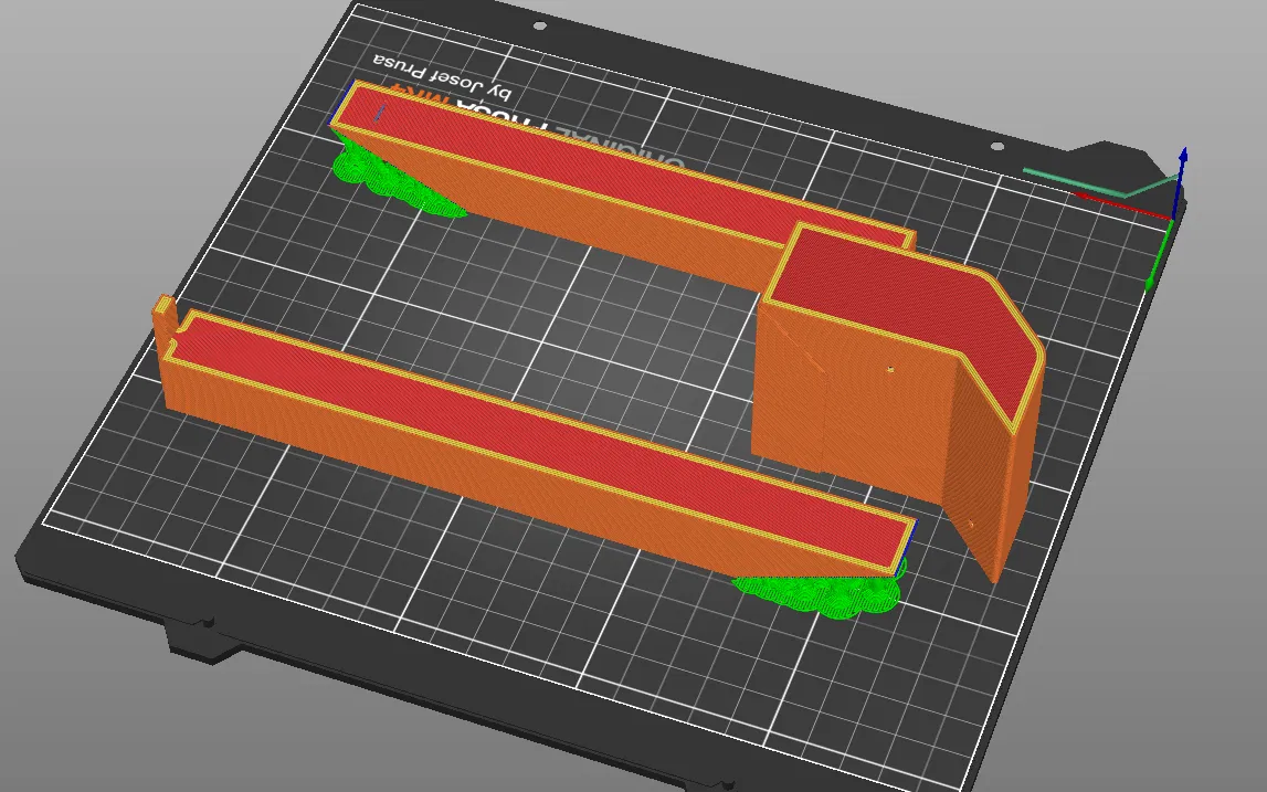 Hướng in mà tôi đã sử dụng: cắt ở giữa giá đỡ tay, đặt chúng với các bộ phận cao hơn hướng lên trên, với hỗ trợ khi đó là vết cắt góc. (Như được thấy trên ảnh/ảnh chụp màn hình thứ 3)