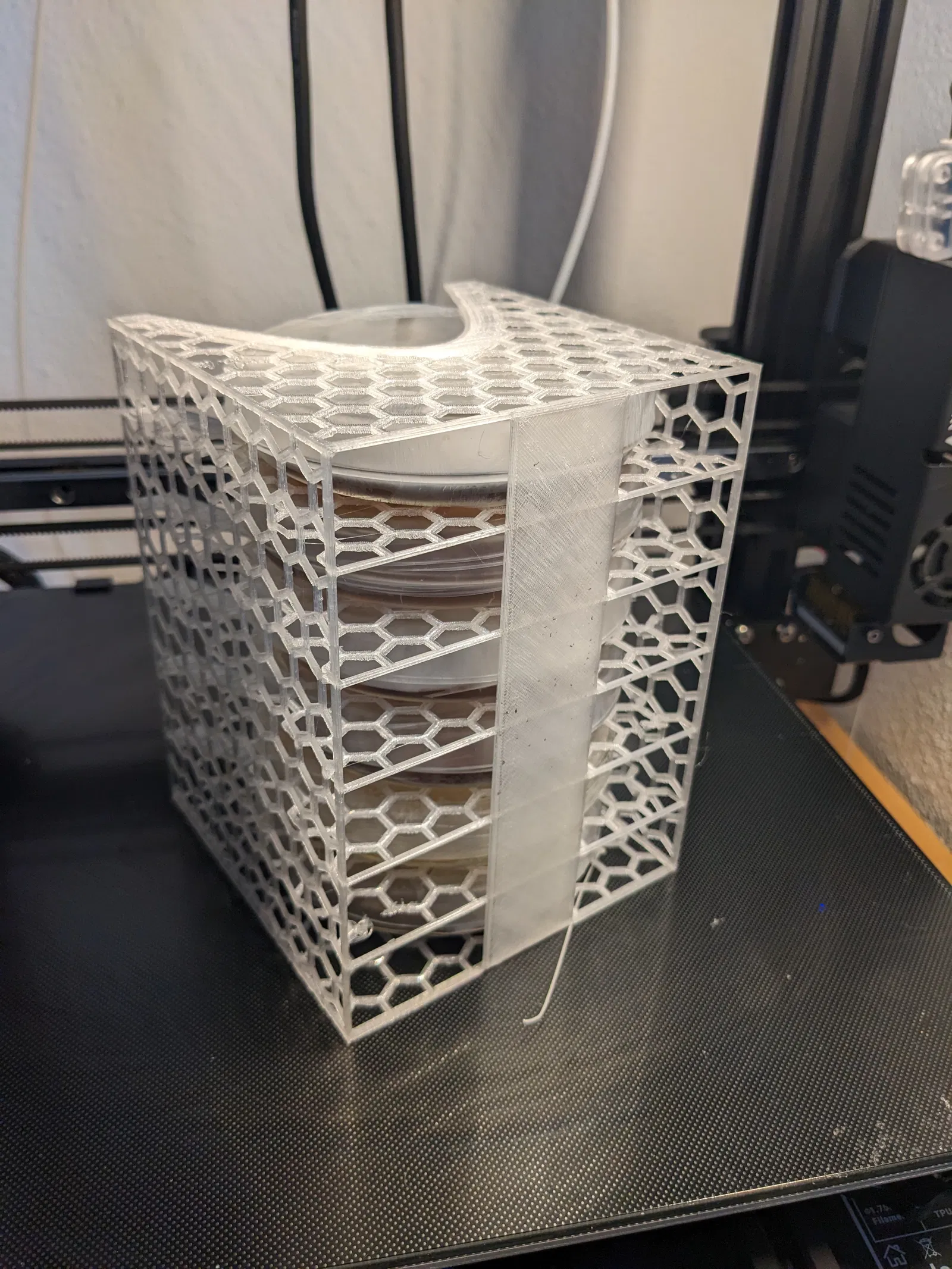 Mẫu này xài thiết kế dạng lưới lục giác, in ra cân nặng chỉ khoảng 30-50 gram thôi, thay vì 200 gram như mấy mẫu kia. Thời gian in cũng nhanh hơn chút đỉnh nữa.