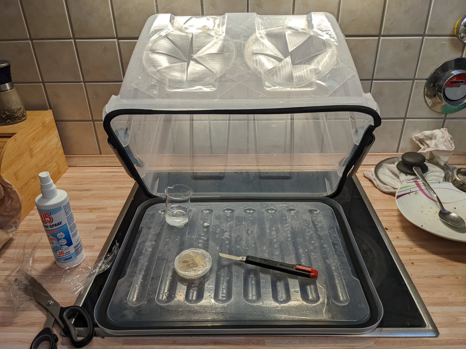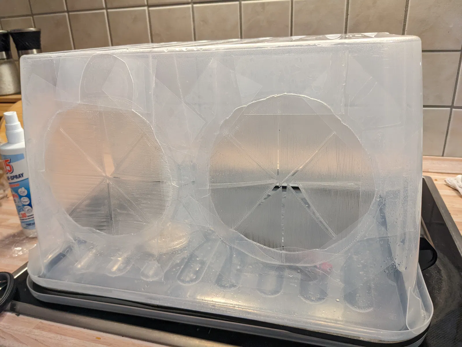 Việc này được thực hiện bằng một hộp nhựa của IKEA, bạn khoét lỗ để cho tay vào. Thông thường sẽ có một khoảng trống lớn giữa thành hộp và tay bạn, nơi không khí từ bên ngoài vẫn có thể lọt vào.