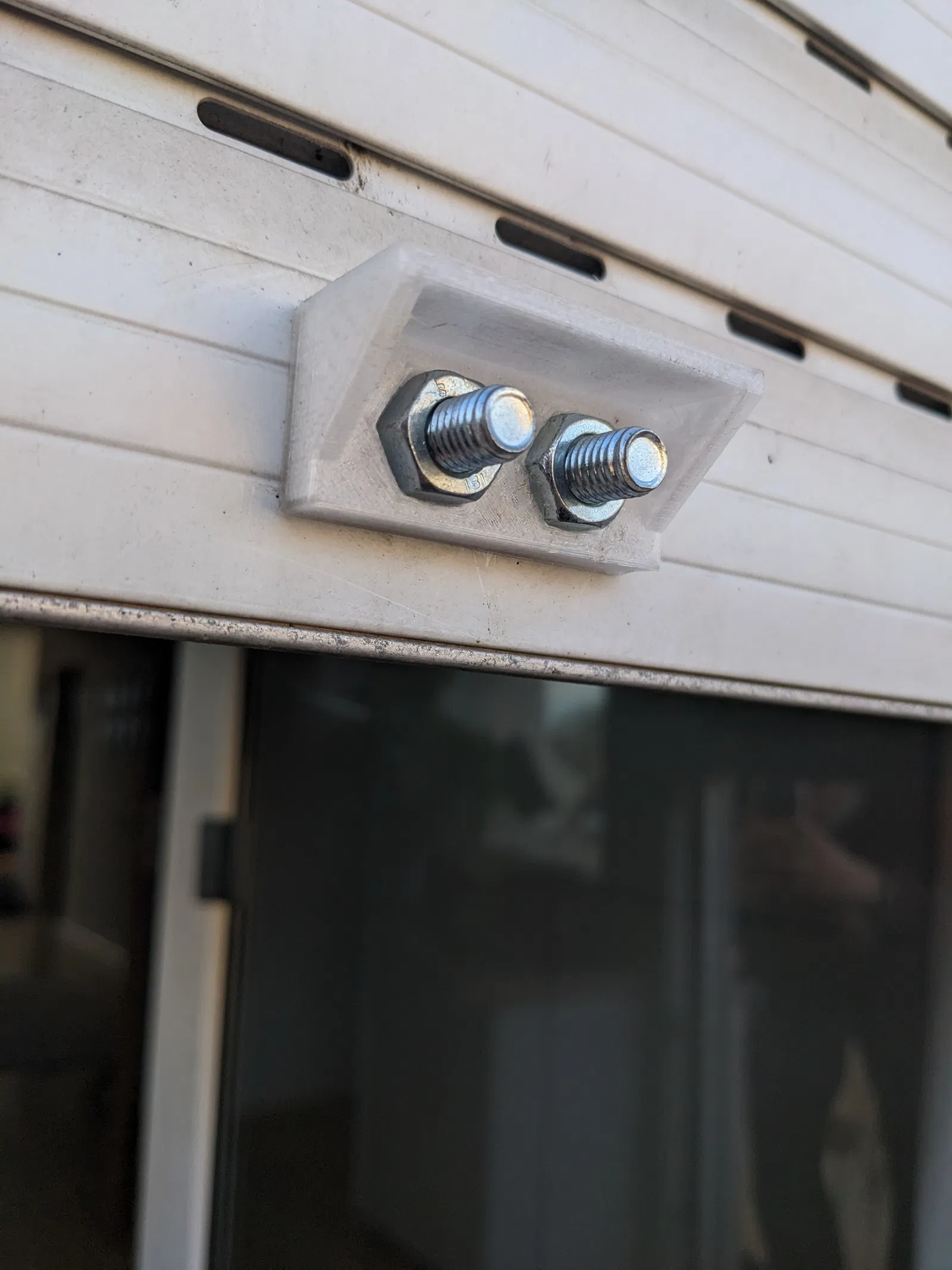Cục chặn cửa cuốn nhà tui bị gãy, tui thiết kế cái mới xài bao bền. In bằng nhựa PETG, Nylon, PCTG... xài ốc M8 là okela.