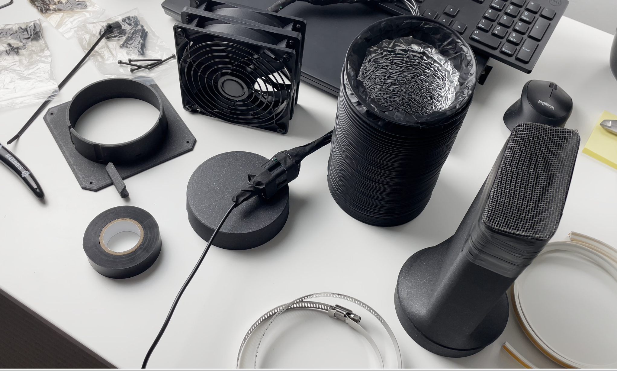 Do hệ thống lọc nâng cao của Original Prusa Enclosure không lọc được VOC, bạn cần hút khí ra ngoài qua quạt 120mm nối ống 100mm. Bộ file này giúp bạn thực hiện điều đó, đã được tác giả in và lắp đặt thành công trên máy MK4.