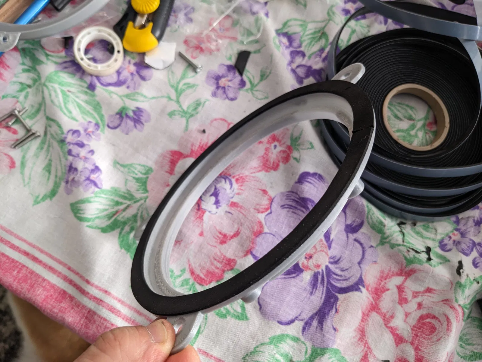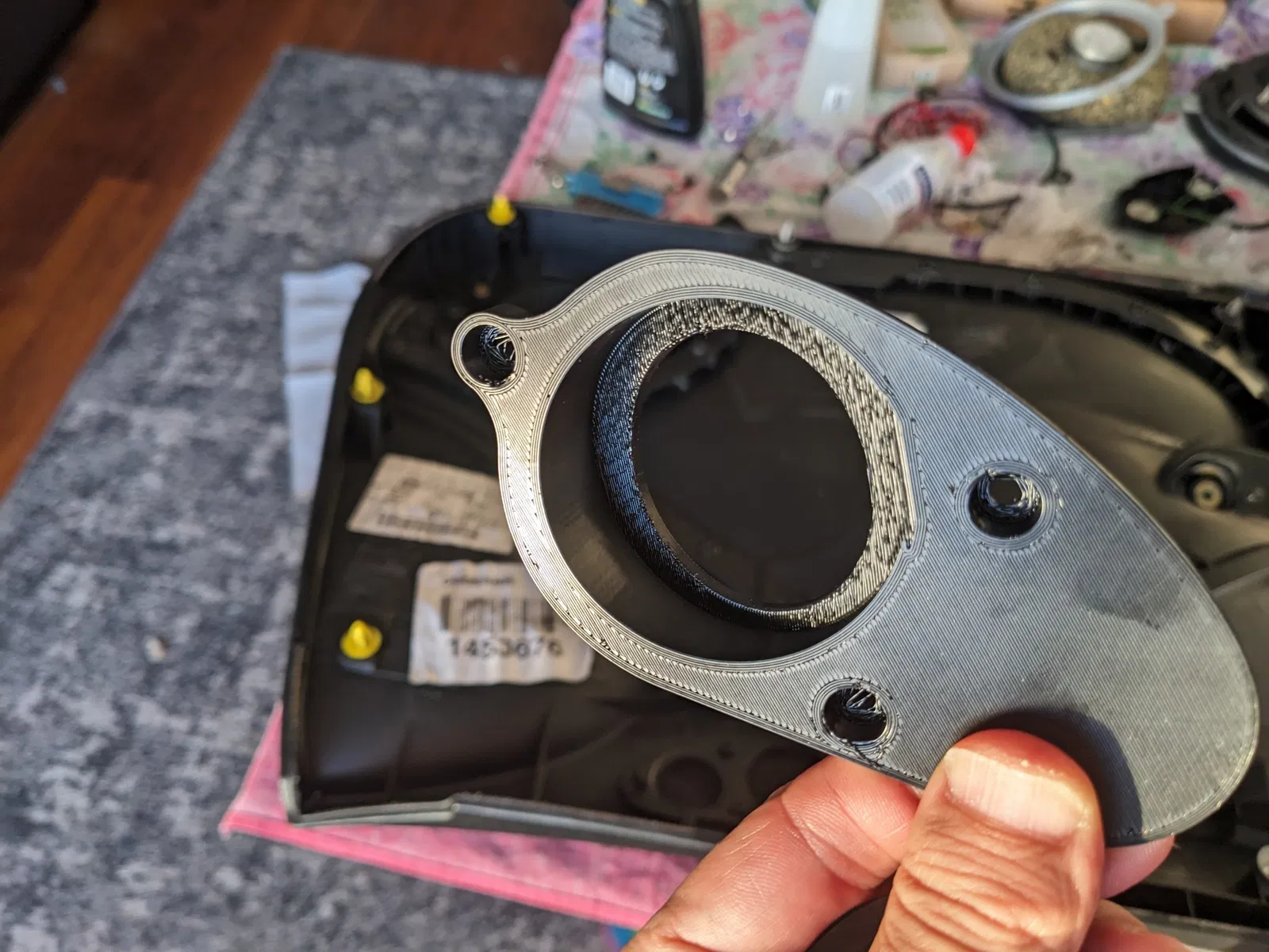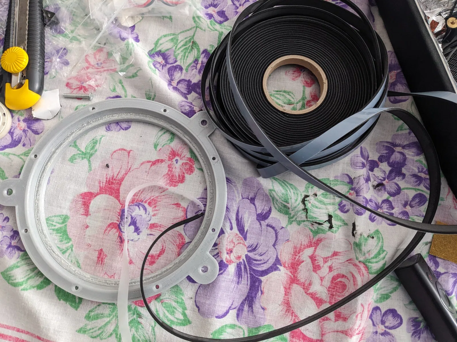 P.S.: vòng "Trên" không bắt buộc. Bạn có thể sử dụng đệm giữa loa và vít để cố định loa vào giá đỡ, nhưng tôi muốn sử dụng bộ bọt đặt ở mặt sau của vòng loa.