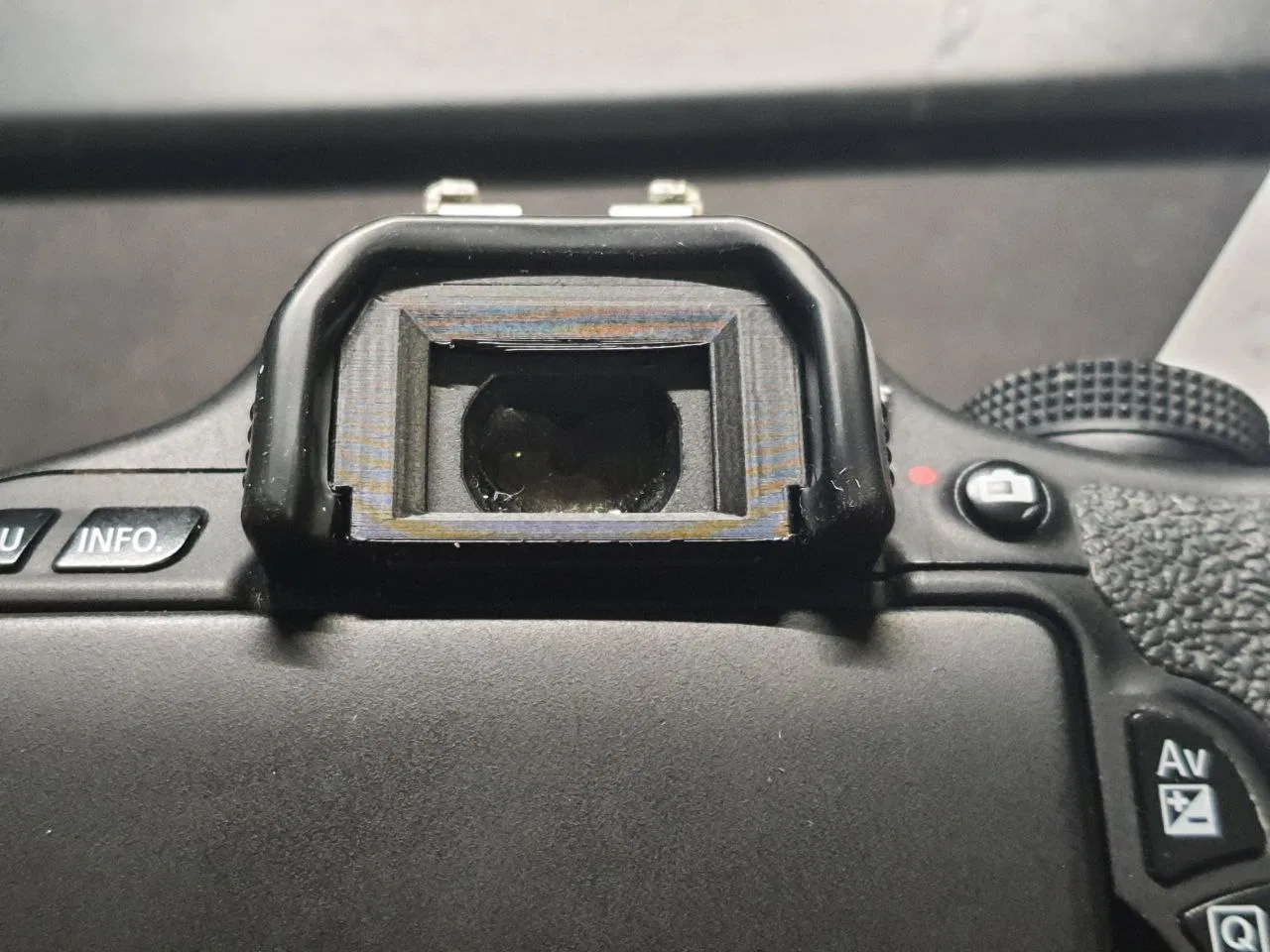 Thay thế kính ngắm zin, nhưng vẫn xài ron dẻo zin. Thiết kế cho EOS 600D. Cái zin của tui bị lỏng nên tui làm lại cái mới cho nó ôm sát máy, xài lại ron dẻo zin cũ. In đứng có support.