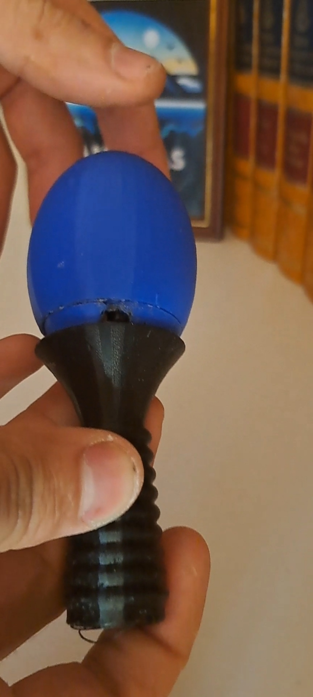 Ý tưởng là dồn hết ánh sáng của cây quyền trượng vào viên ngọc, vì vậy tôi đã làm viên ngọc gồm hai phần lồng vào nhau và nó sẽ sáng lên khi xoay. Các bạn có thể xem video về toàn bộ cây quyền trượng và cách nó hoạt động trên mạng xã hội của tôi.