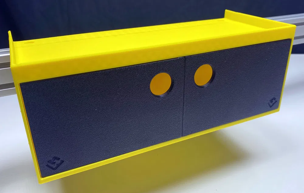 Tủ MT-SYSTEM L phiên bản H3C1 với 2 cửa, kích thước 245 x 90 x 105mm, lý tưởng cho xưởng, xe hơi, mô hình. Dễ lắp đặt, có ngăn bí mật, có thể xếp chồng. In bằng PLA/PETG.