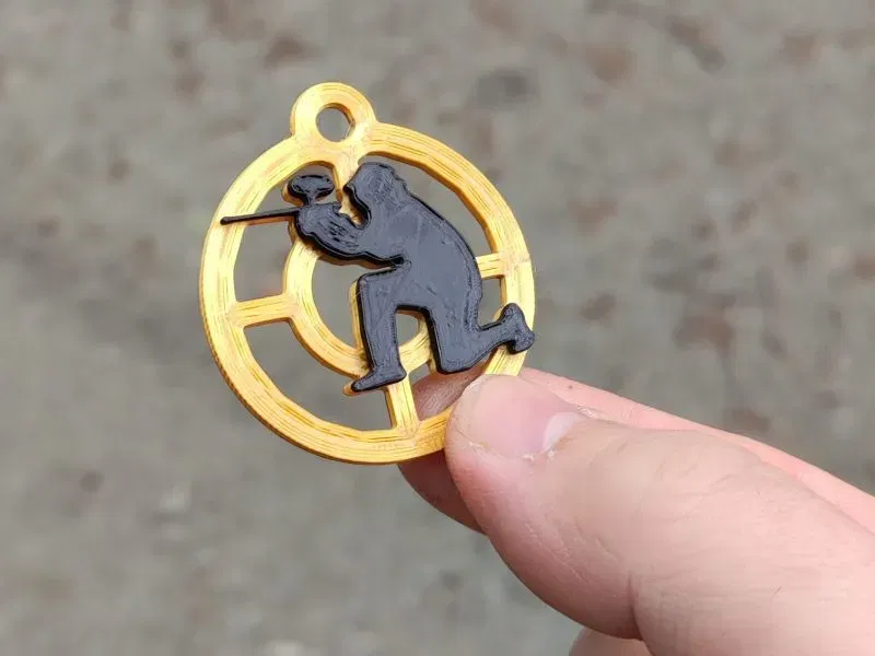 Huy chương vàng cho MVP (người chơi có giá trị nhất) trong môn paintball của ngày hôm nay, cũng có thể sử dụng như một móc khóa.