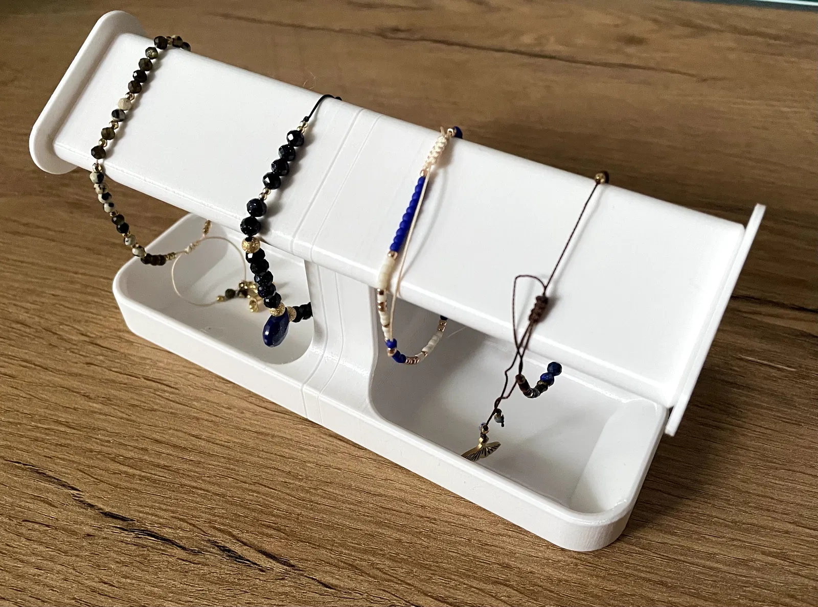 Thêm các đầu chặn cho kệ để tránh đồ vật bị trượt ra ngoài. Giúp giữ đồng hồ và trang sức của bạn an toàn trên kệ.