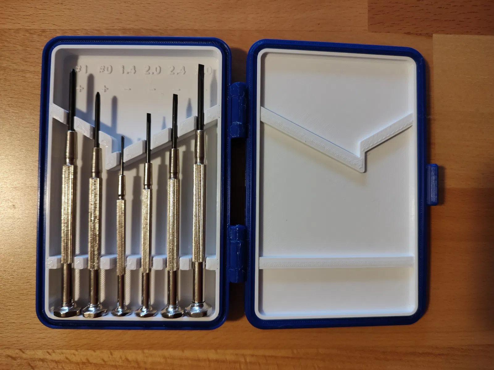 Cái hộp đựng tua vít chính xác của TimATX in ra ngon lành, nhưng tua vít thì không khớp. Tui đã thiết kế lại khay bên trong dựa trên hộp cũ và có kèm file FreeCAD để bà con tự chỉnh sửa cho hợp với bộ tua vít của mình.