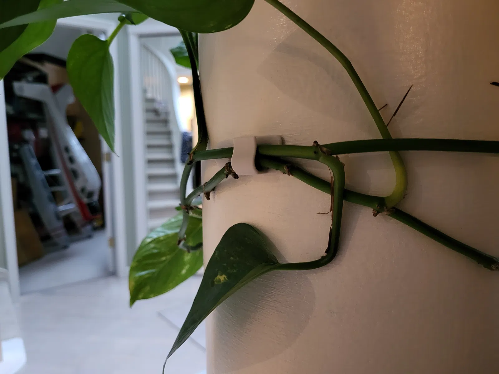 Đây là cái kẹp cây mình thiết kế cho bề mặt cong nè. Nó giống cái "Command Outdoor Small Light Clip" á, mà để gắn lên trụ. Mình thử dùng cái kẹp Command trước rồi mà do cái bề mặt tiếp xúc trên cái đường cong nó nhỏ quá nên không dính.