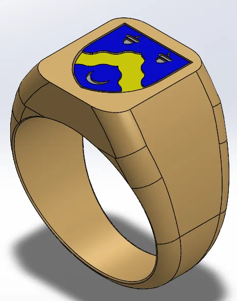 Một chiếc nhẫn tín có huy hiệu gia đình của bạn. Chiếc nhẫn này là một bản thiết kế nhẫn tín với huy hiệu gia đình của người tạo. Người tạo vẫn đang trong quá trình hoàn thiện và chưa in thử. Hiện tại, nó còn thiếu hai tua ở các góc phía trên.