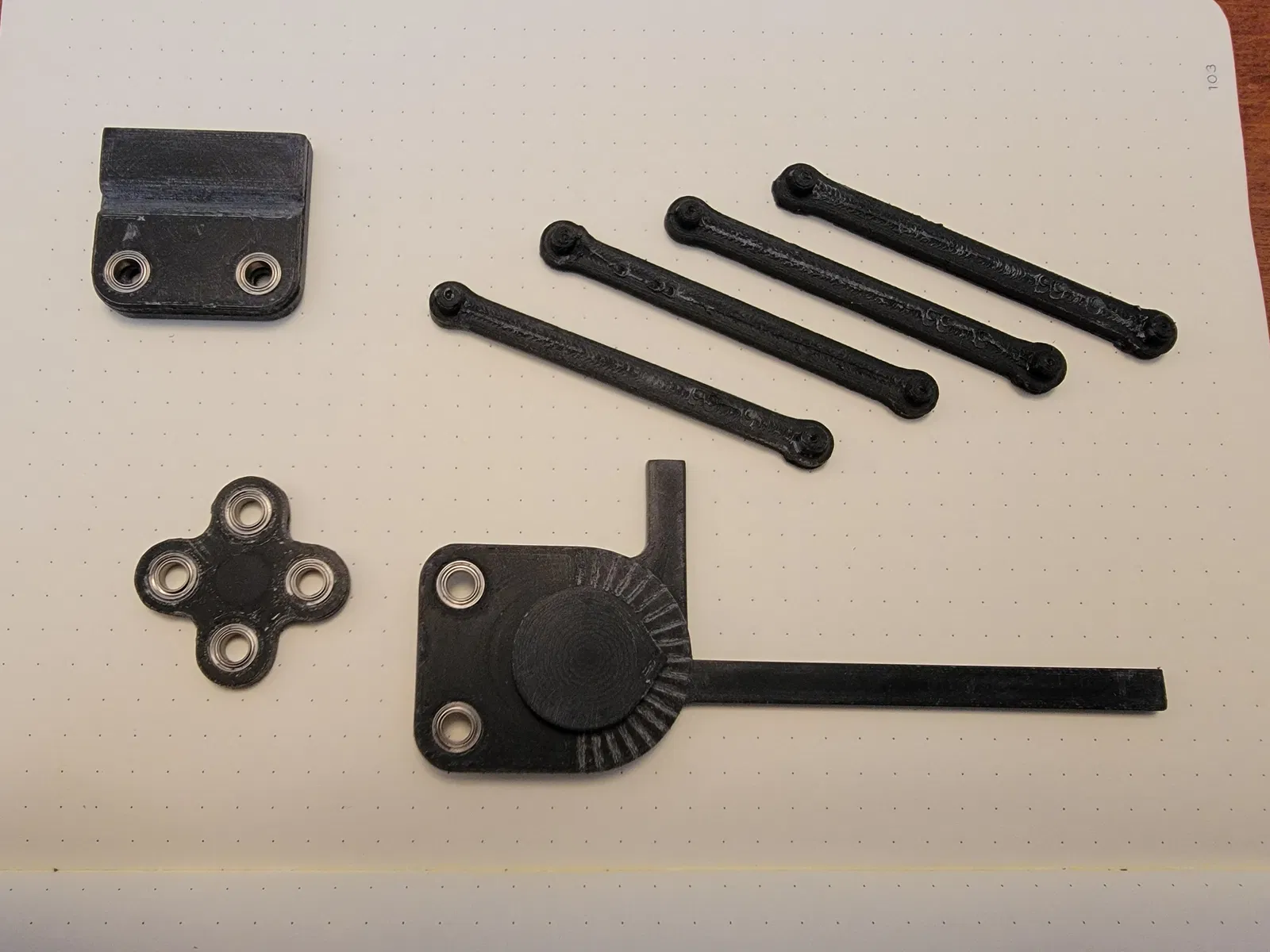 Mấy cái khớp xoay (pivot points) đều có bạc đạn mini (sealed ball bearings) ép vô, chạy mượt mà, chính xác lắm nha.
