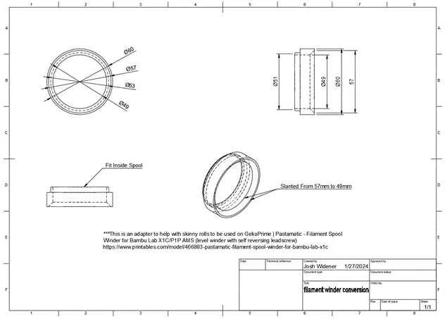 Cục bushing chuyển đổi giúp bạn tận dụng các lõi chỉ 53mm cho máy in 3D, tương thích với thiết kế Spool Winder của GekoPrime. Giải pháp tuyệt vời để tái sử dụng lõi nhỏ!